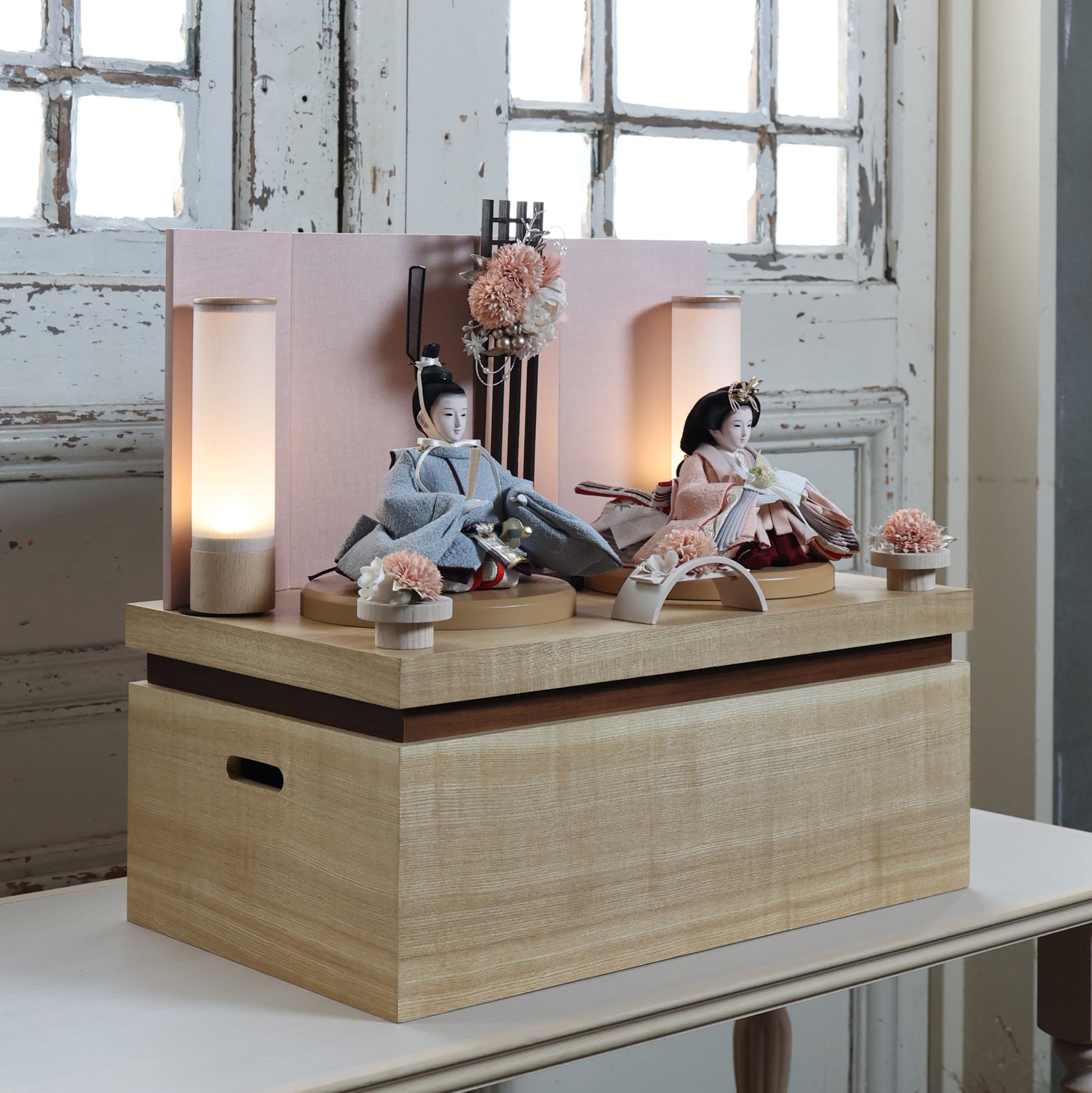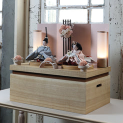 国産の栓(せん)は、美しい木目と温もりある質感が魅力の天然木です。耐久性に優れ、経年とともに味わいを深めます。台座や屏風などに使用することで、自然素材ならではの落ち着いた風合いと上質感を演出し、雛人形全体をより品格ある印象に仕上げます。