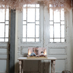 マイクロローズの「愛らしさ」、ダリアの「華麗」。クリームイエロー、ムーブピンク、アイボリーホワイト·ベビーピンクのやわらかな彩りが、赤ちゃんの無垢な笑顔と穏やかな未来をそっと包み込みます。