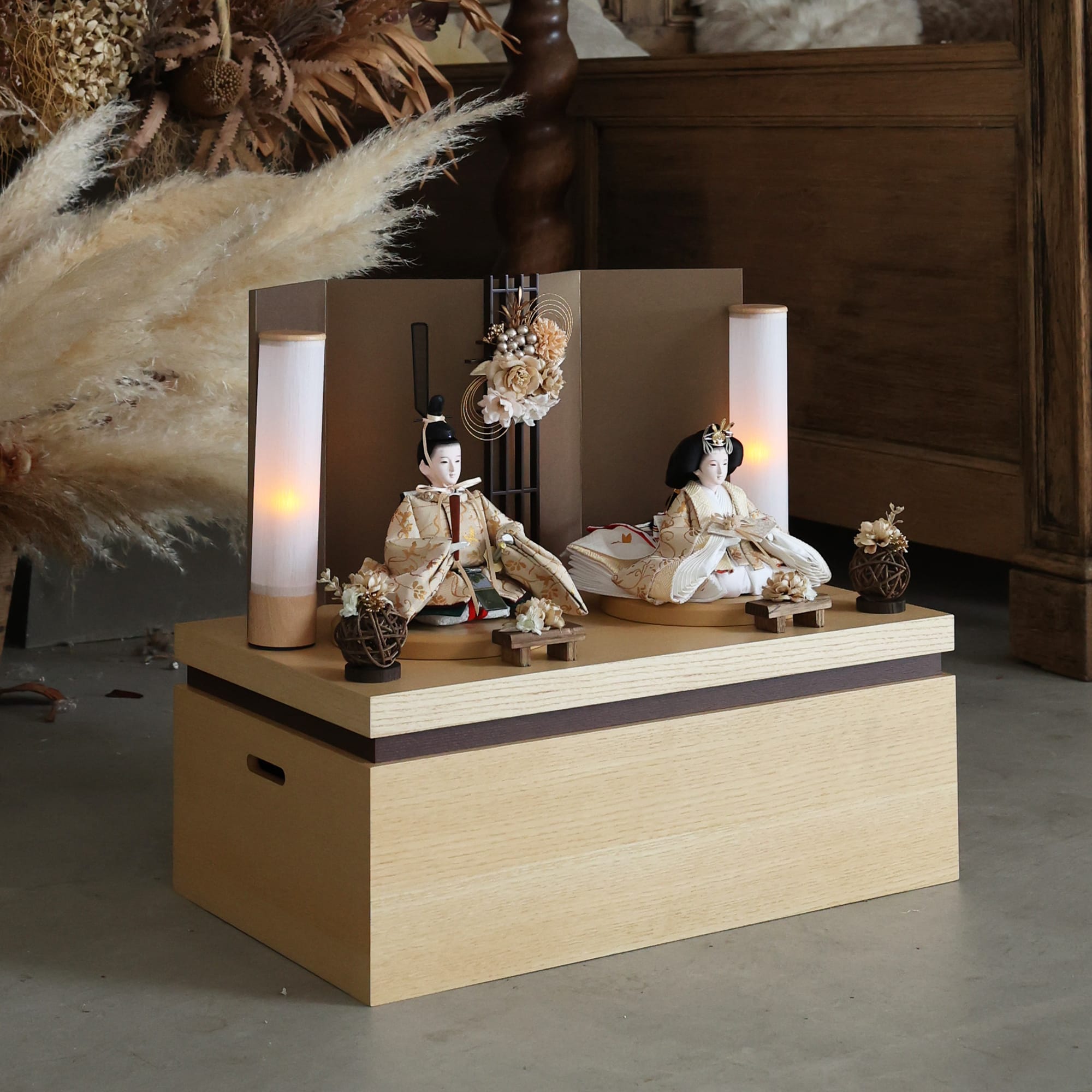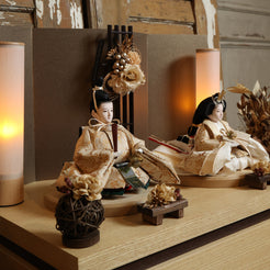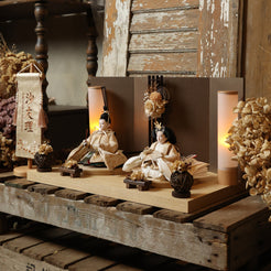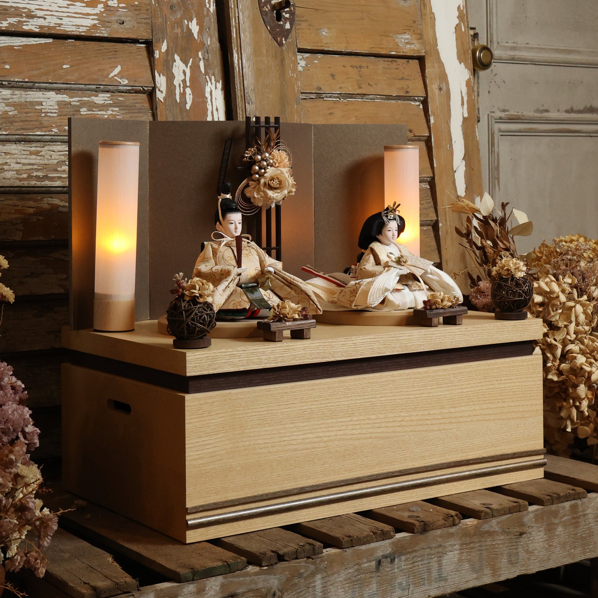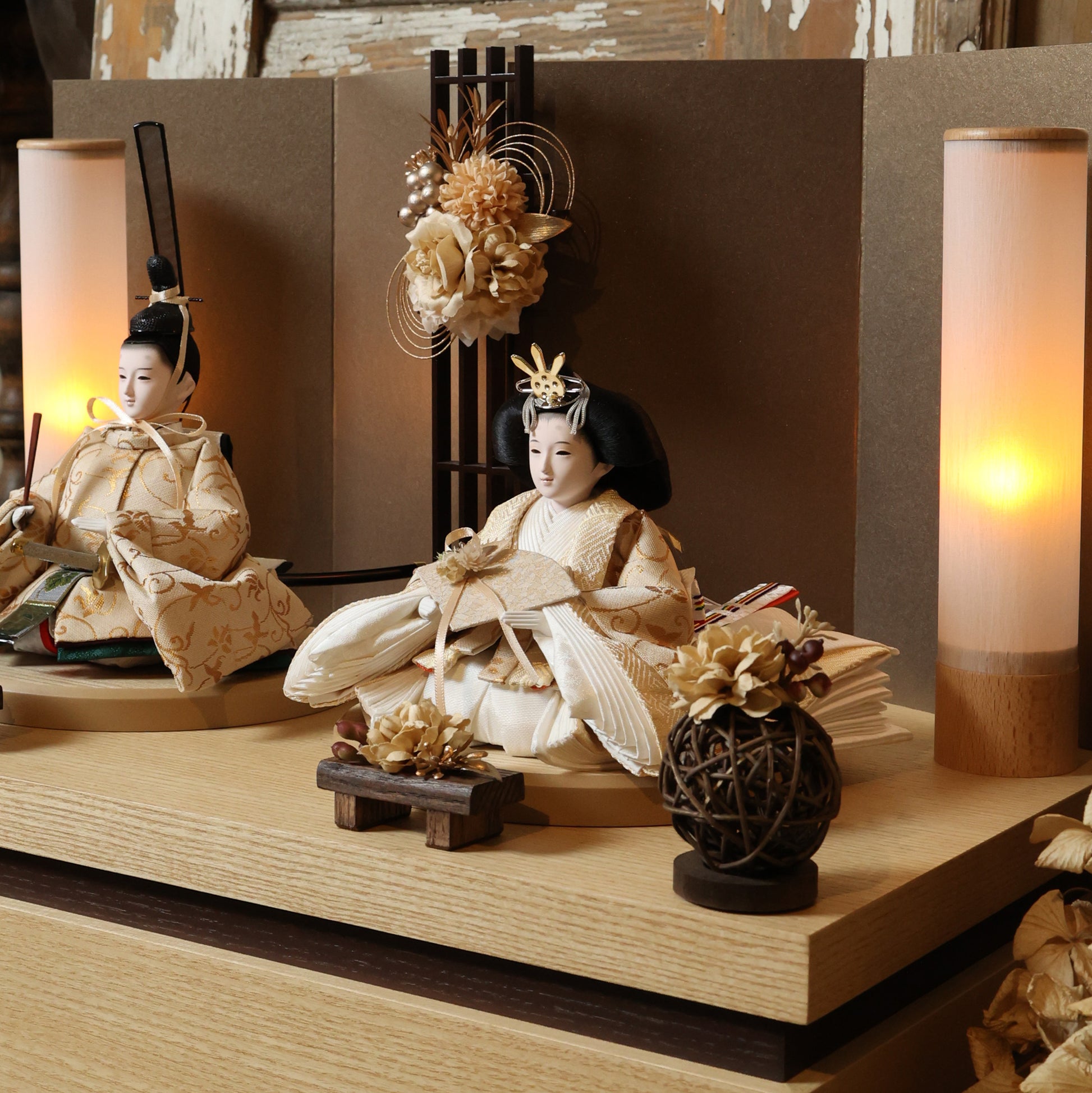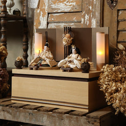 国産の栓(せん)は、美しい木目と温もりある質感が魅力の天然木です。耐久性に優れ、経年とともに味わいを深めます。台座や屏風などに使用することで、自然素材ならではの落ち着いた風合いと上質感を演出し、雛人形全体をより品格ある印象に仕上げます。