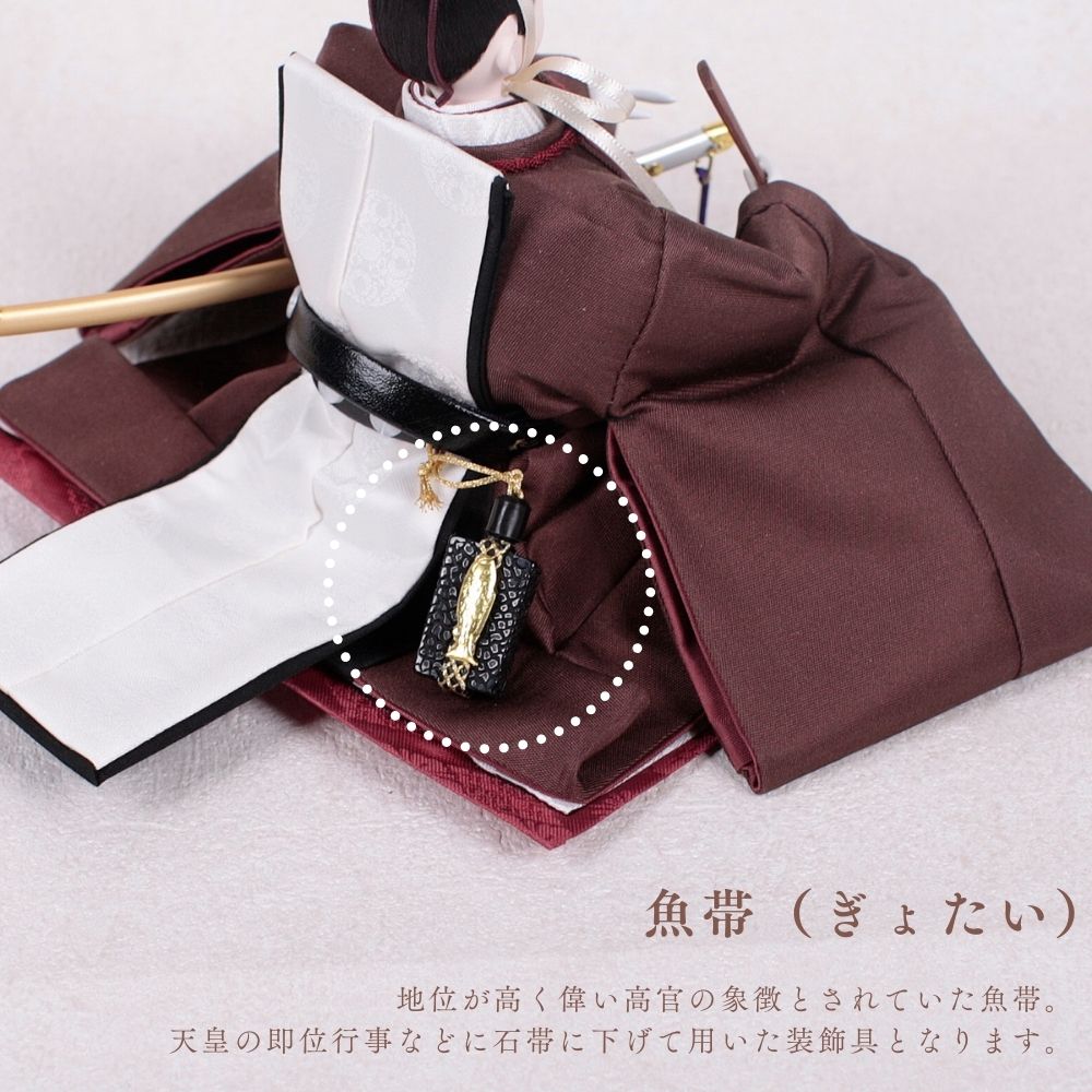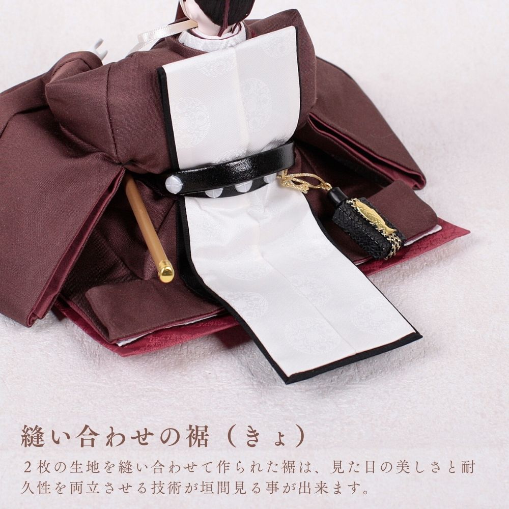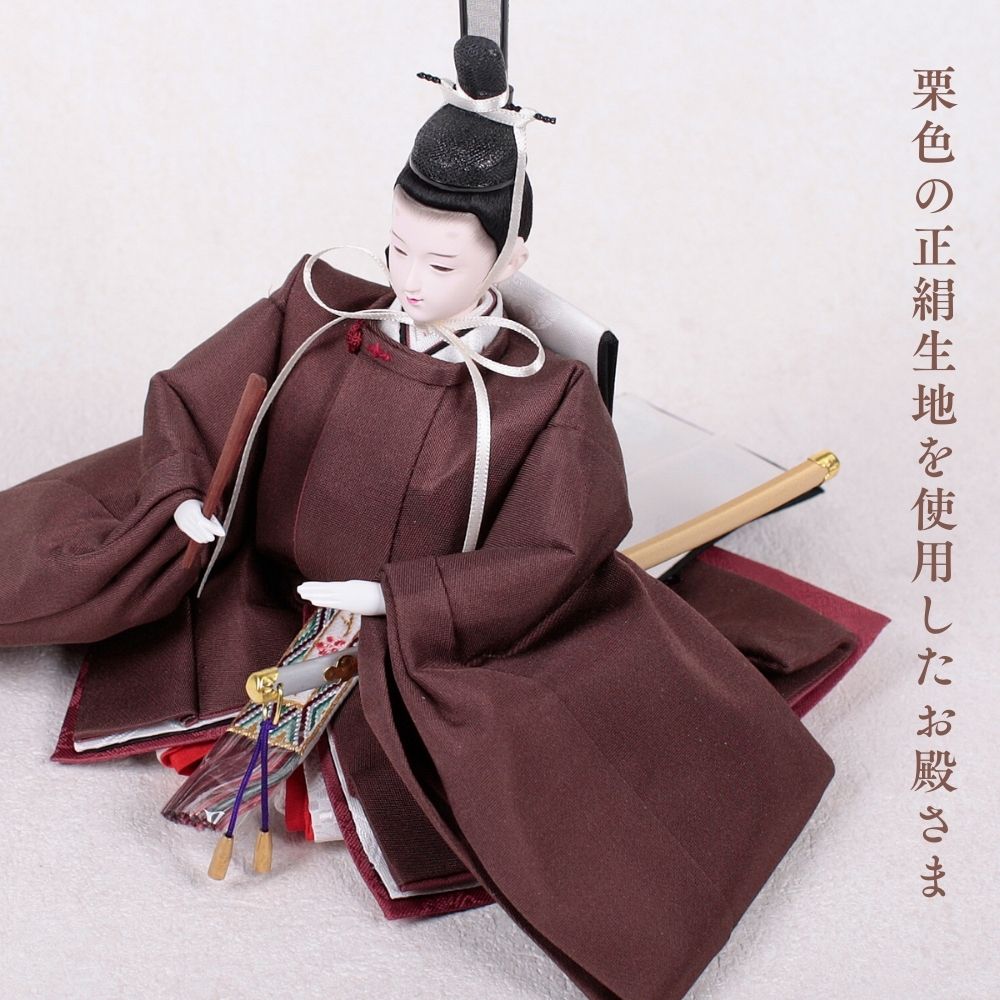 栗色の羽織をまとったお殿様は、温もりと優雅さを象徴し、赤ちゃんの穏やかな成長と家庭の安らぎを祈る雛人形です。