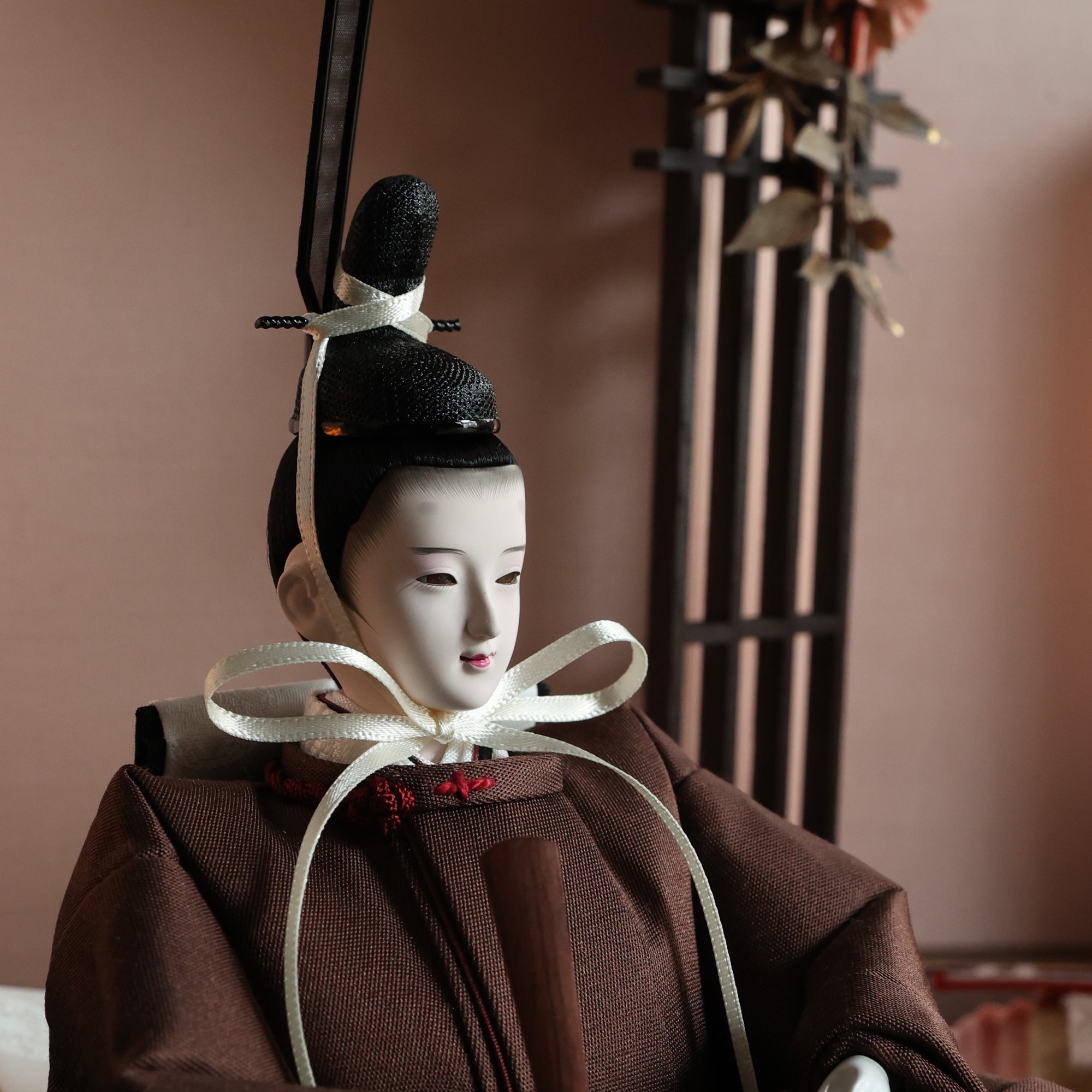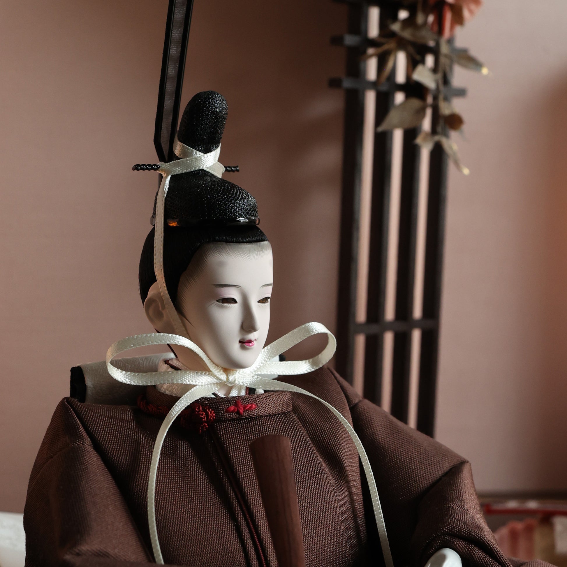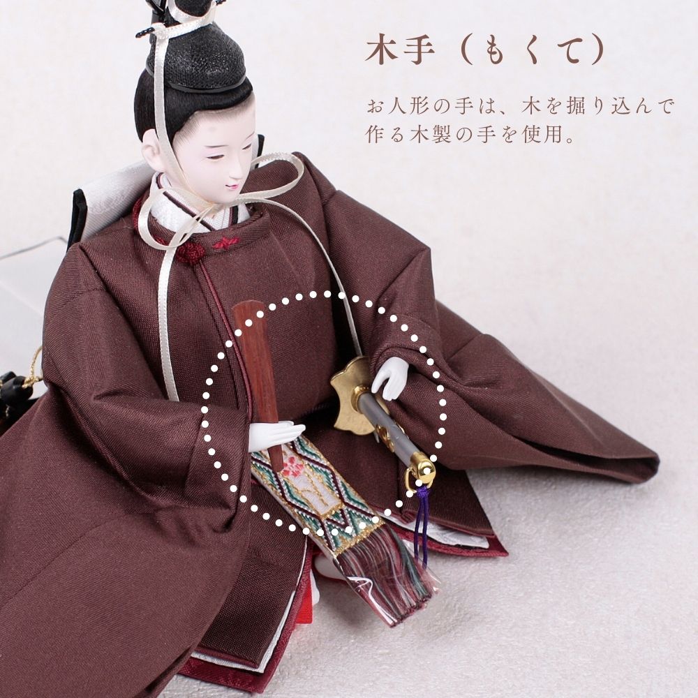 栗色の羽織をまとったお殿様は、温もりと優雅さを象徴し、赤ちゃんの穏やかな成長と家庭の安らぎを祈る雛人形です。