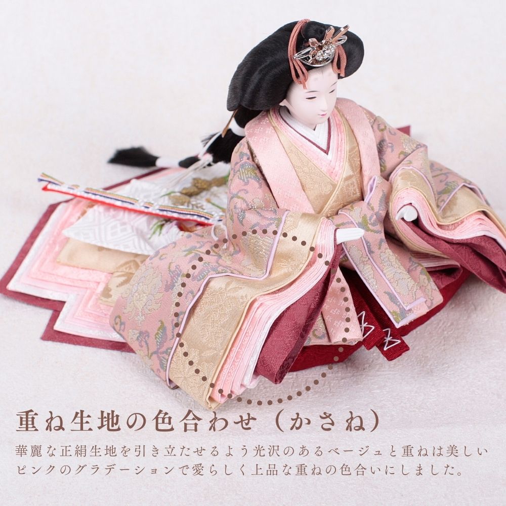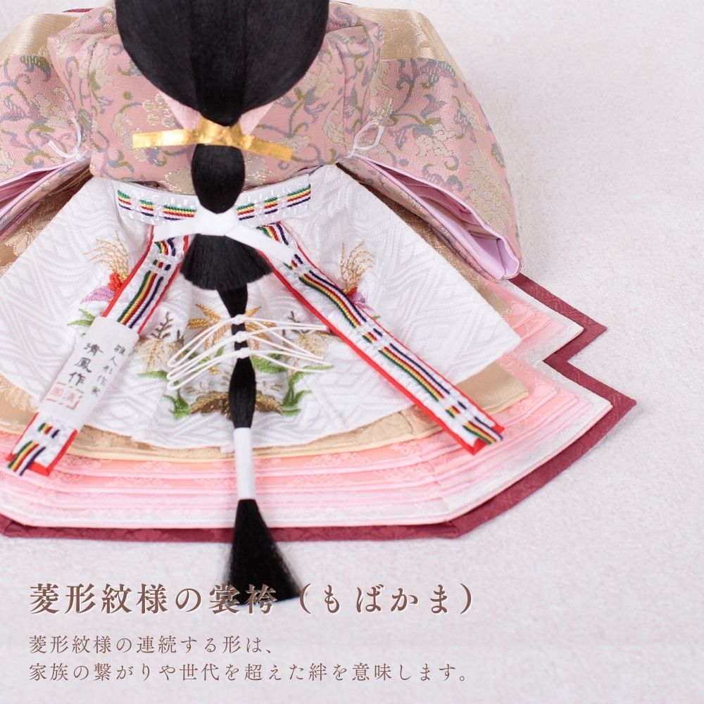 お雛様の形は、正三角形が取れた形が一番美しいとされており、清鳳のお人形は、とても美しい造形美でたくさんの人を魅了してます。