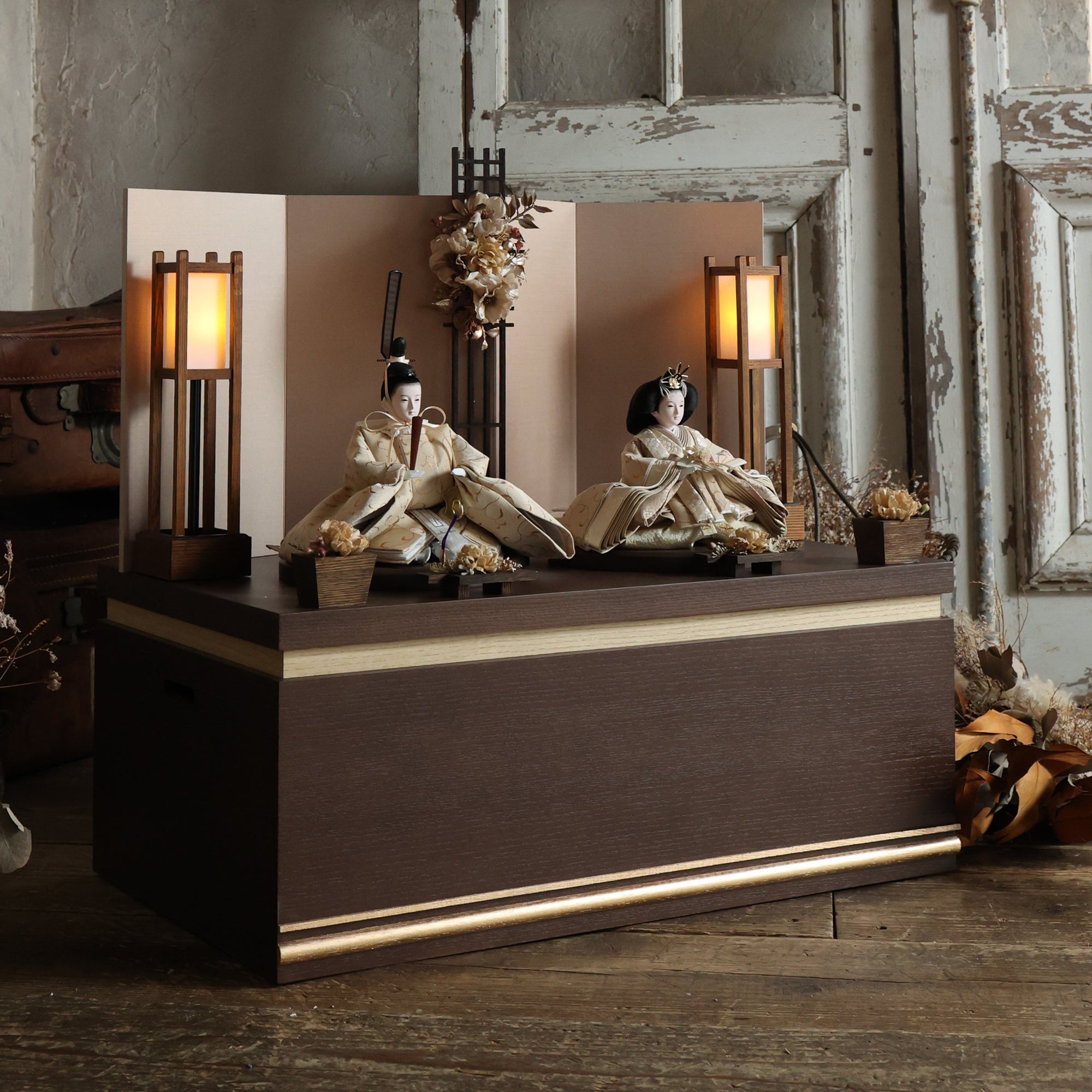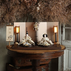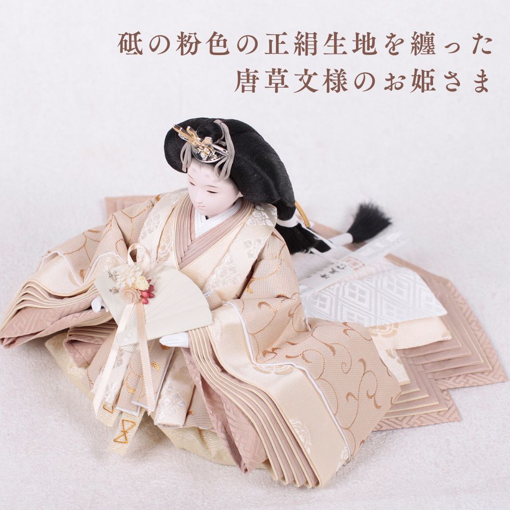 砥の粉色の雛人形は、唐草文様で繁栄や長寿を象徴し、赤ちゃんの成長と家族の幸せを祈る特別なアイテムです。