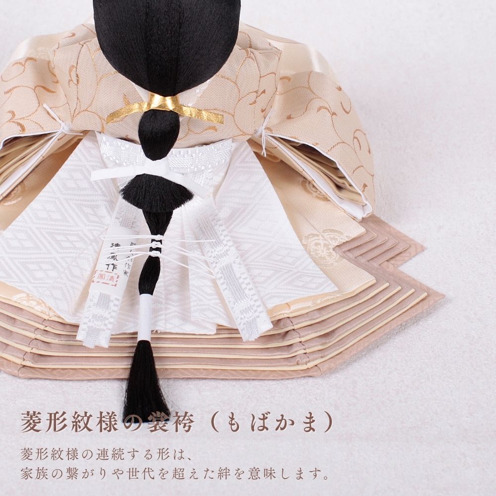 お雛様の形は、正三角形が取れた形が一番美しいとされており、清鳳のお人形は、とても美しい造形美でたくさんの人を魅了してます。