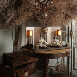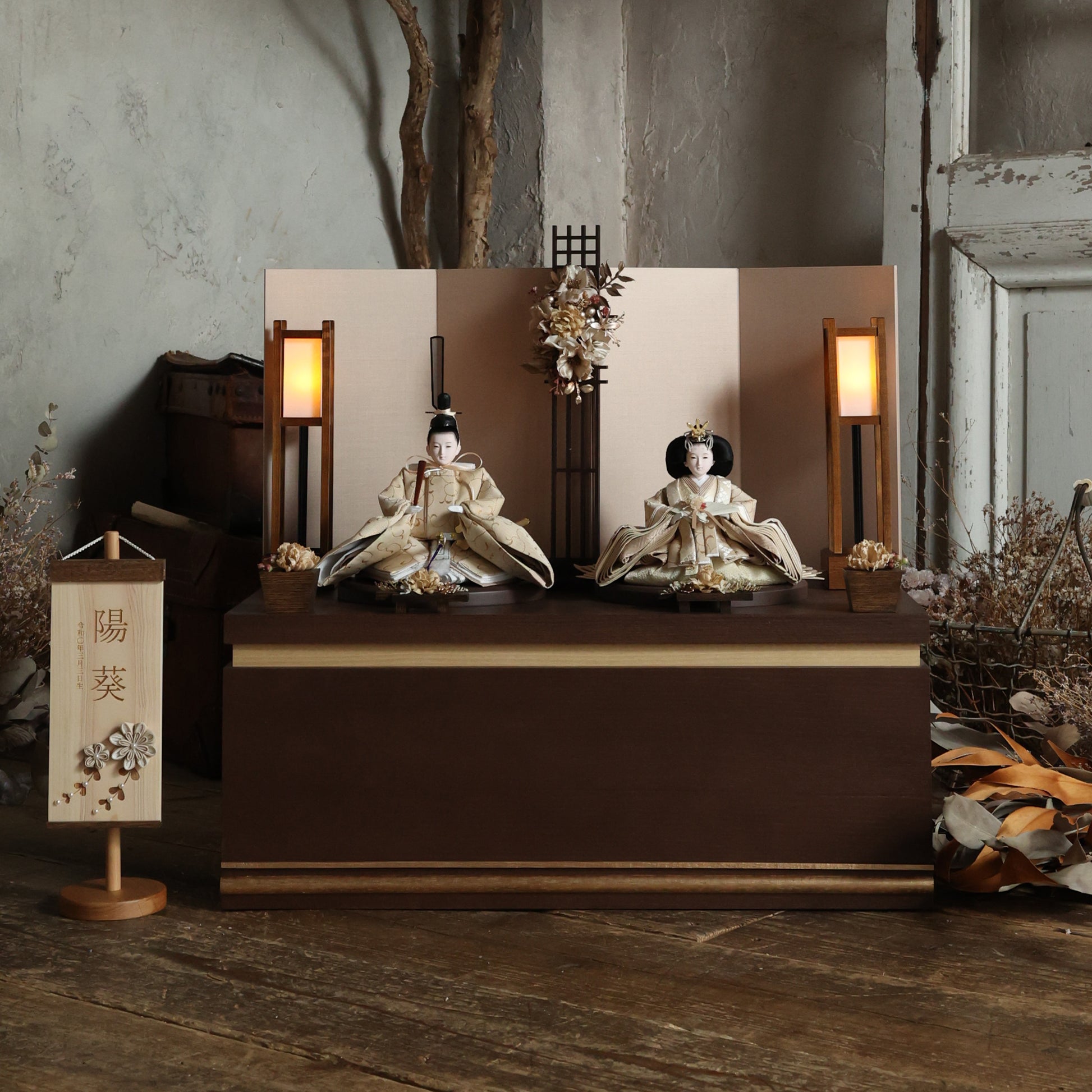 国産の栓(せん)は、美しい木目と温もりある質感が魅力の天然木です。耐久性に優れ、経年とともに味わいを深めます。台座や屏風などに使用することで、自然素材ならではの落ち着いた風合いと上質感を演出し、雛人形全体をより品格ある印象に仕上げます。
