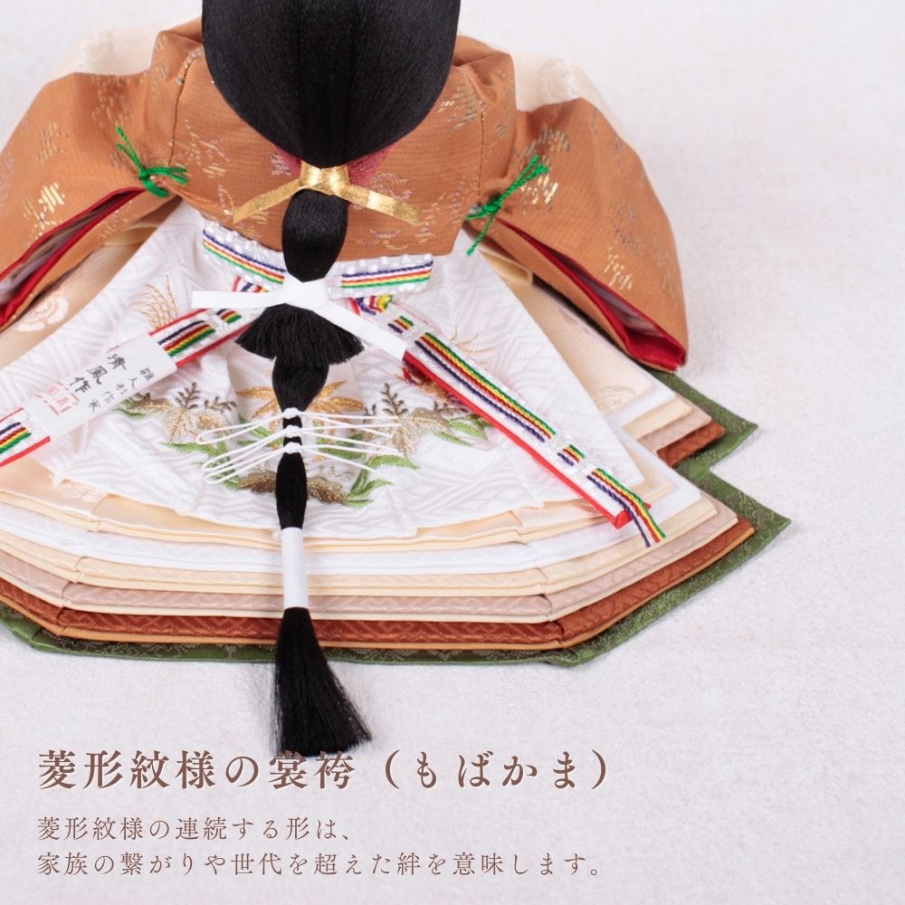 お雛様の形は、正三角形が取れた形が一番美しいとされており、清鳳のお人形は、とても美しい造形美でたくさんの人を魅了してます。