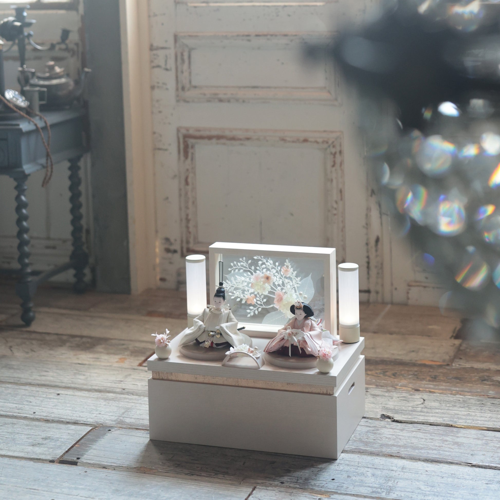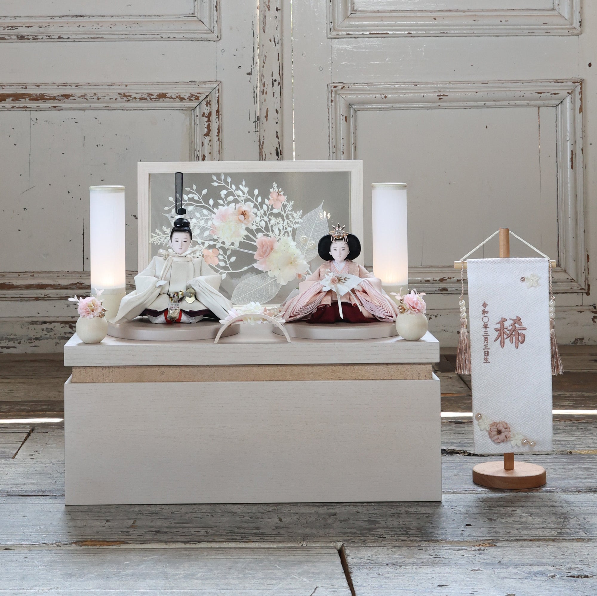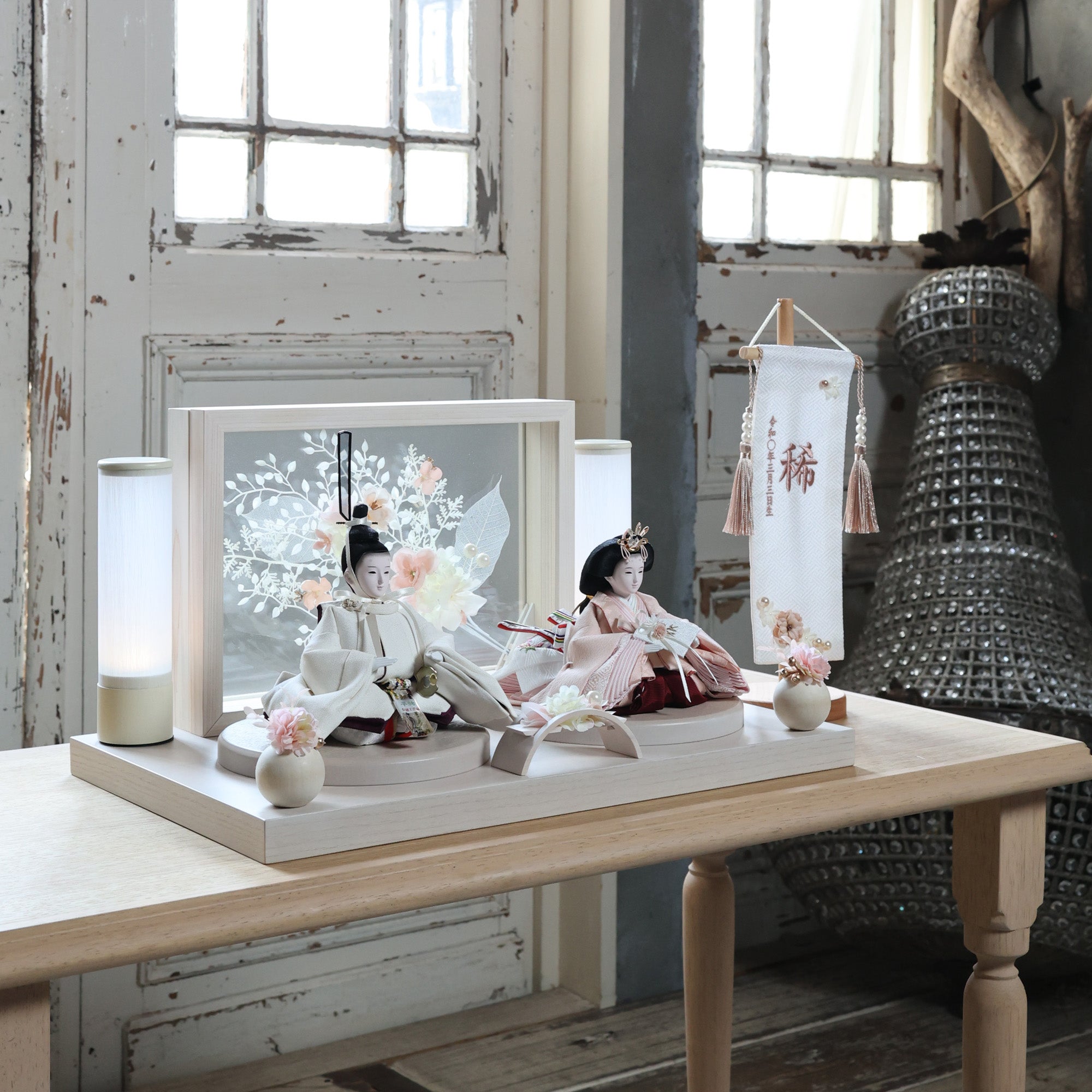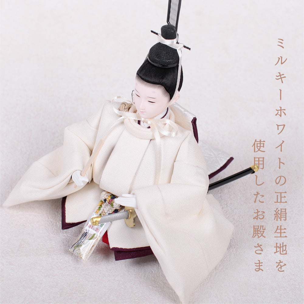 ミルキーホワイトの雛人形は、赤ちゃんの無垢さと幸福を象徴し、未来への希望と温かな安らぎをもたらす美しい存在です。