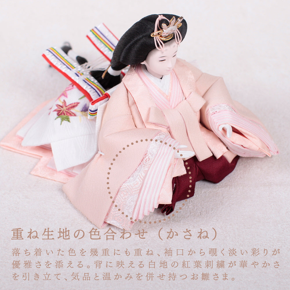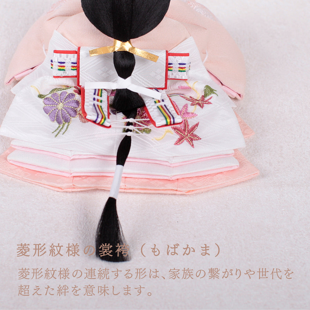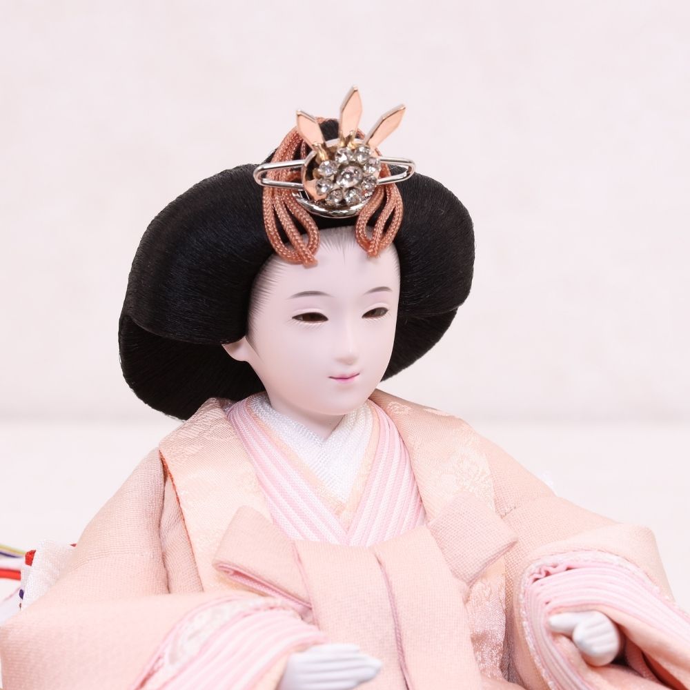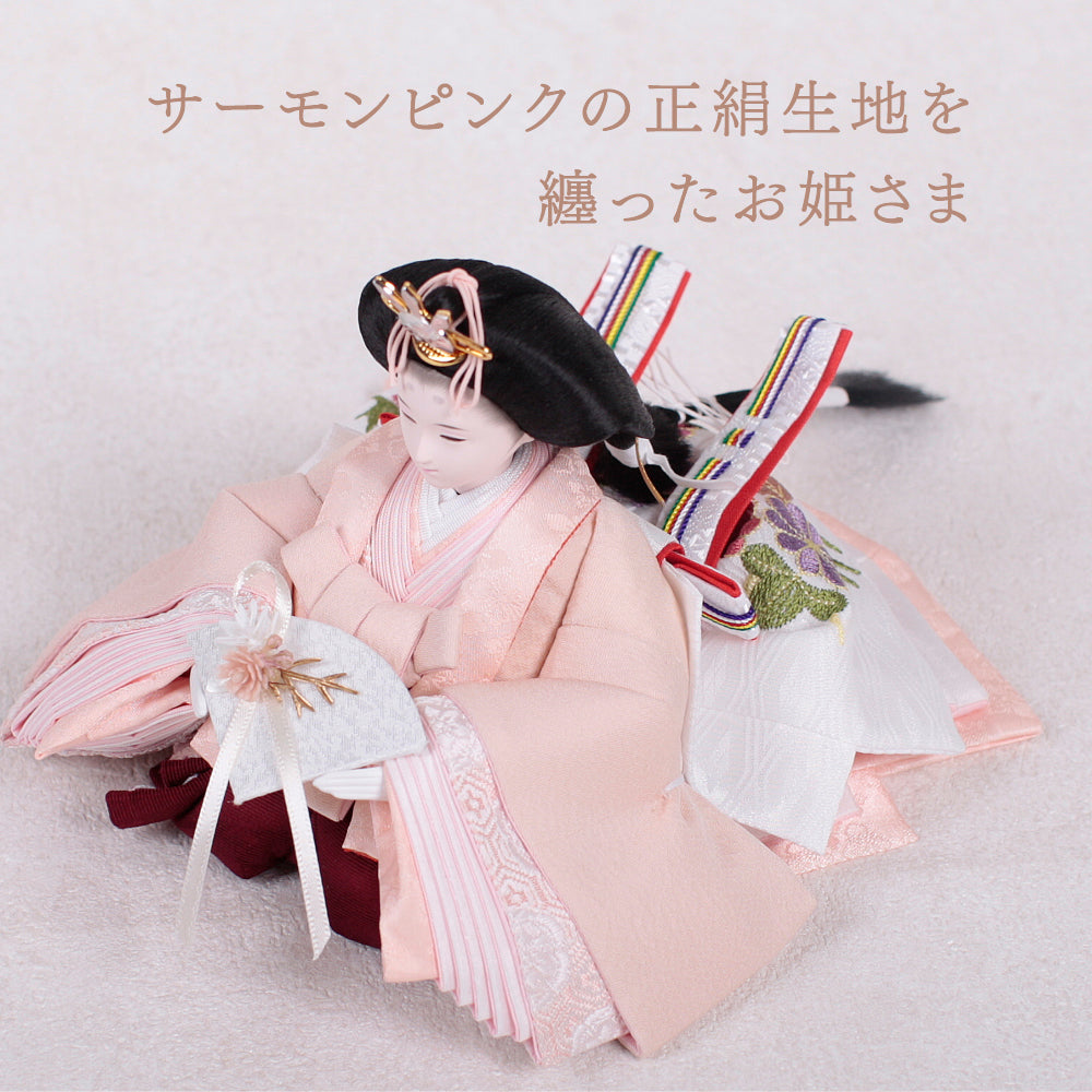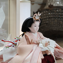 サーモンピンクの雛人形は、赤ちゃんの純粋さと家族の未来を願い、春の訪れと温かな絆を象徴する心温まる存在です。