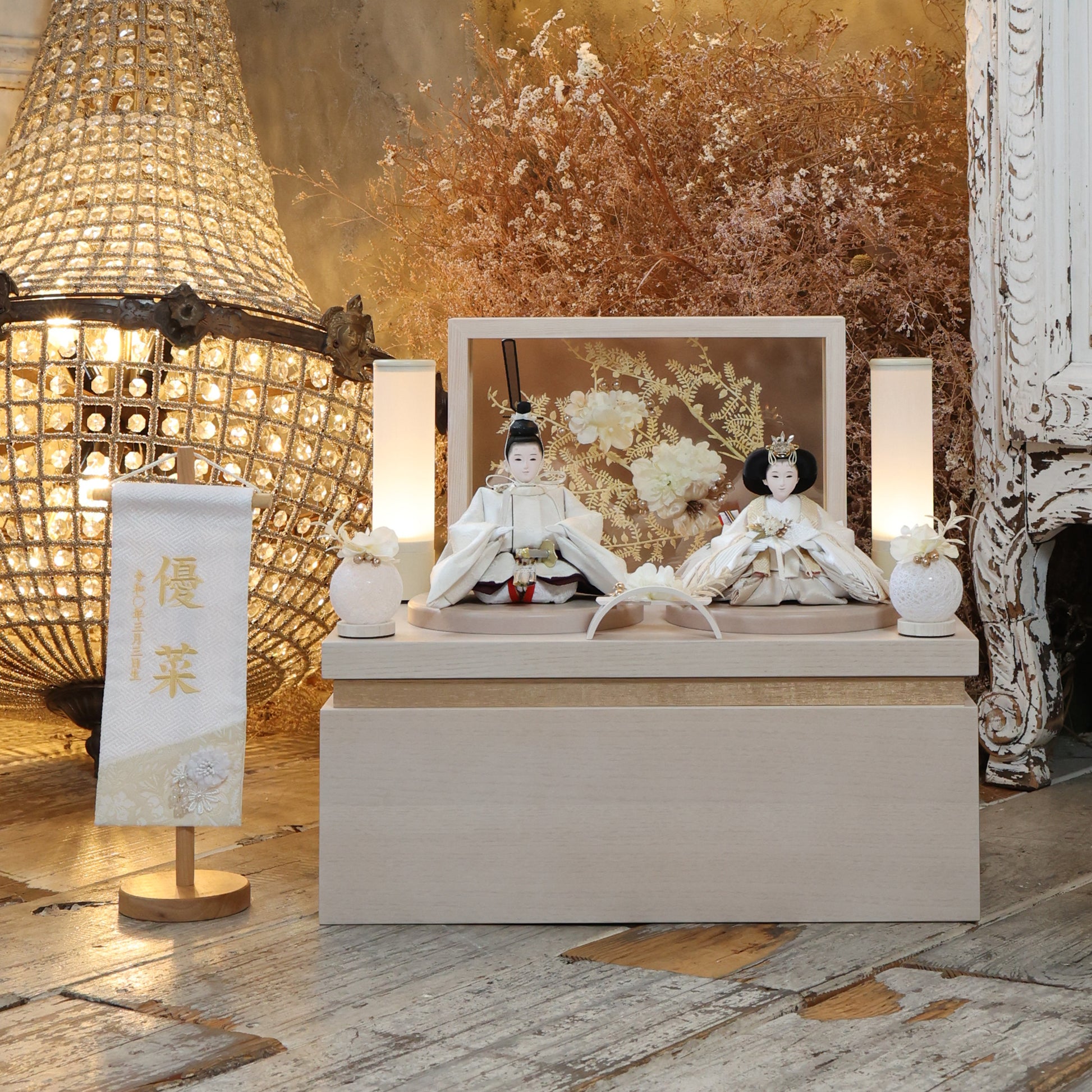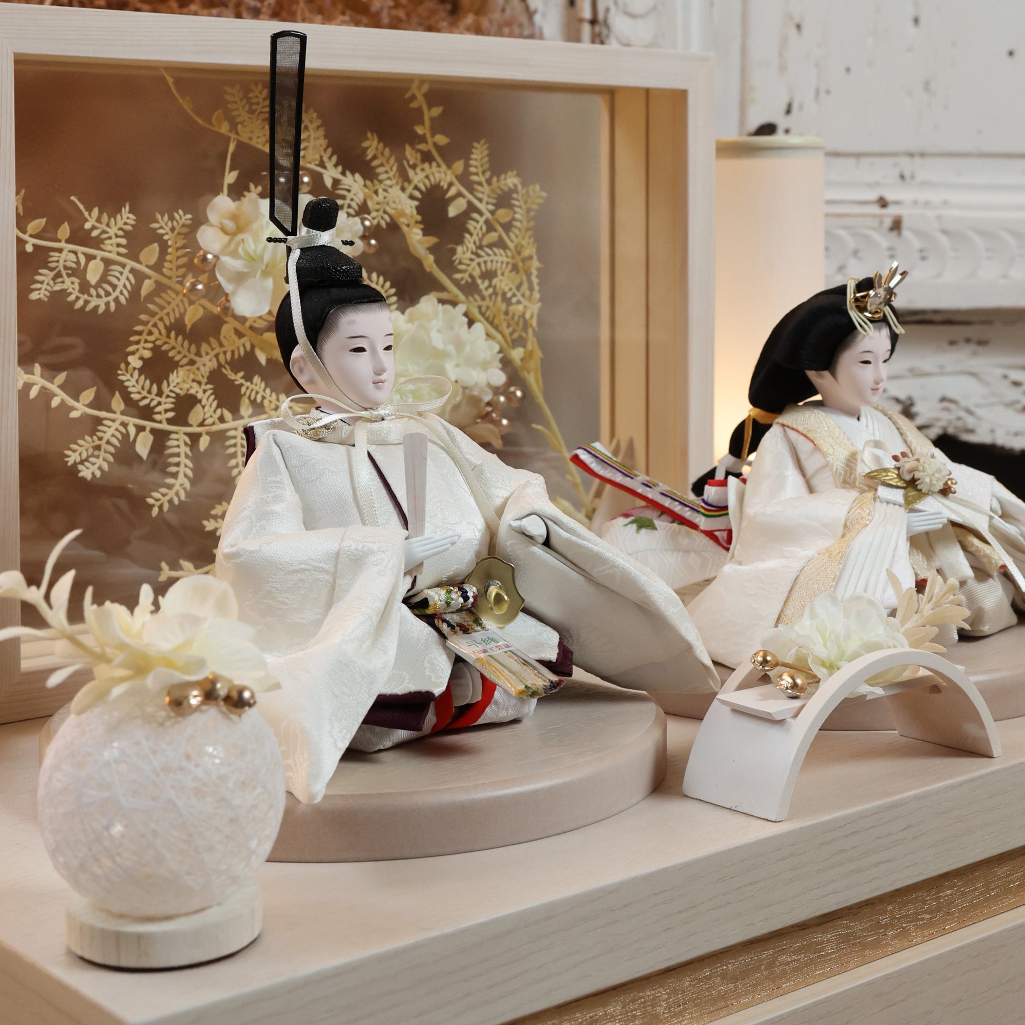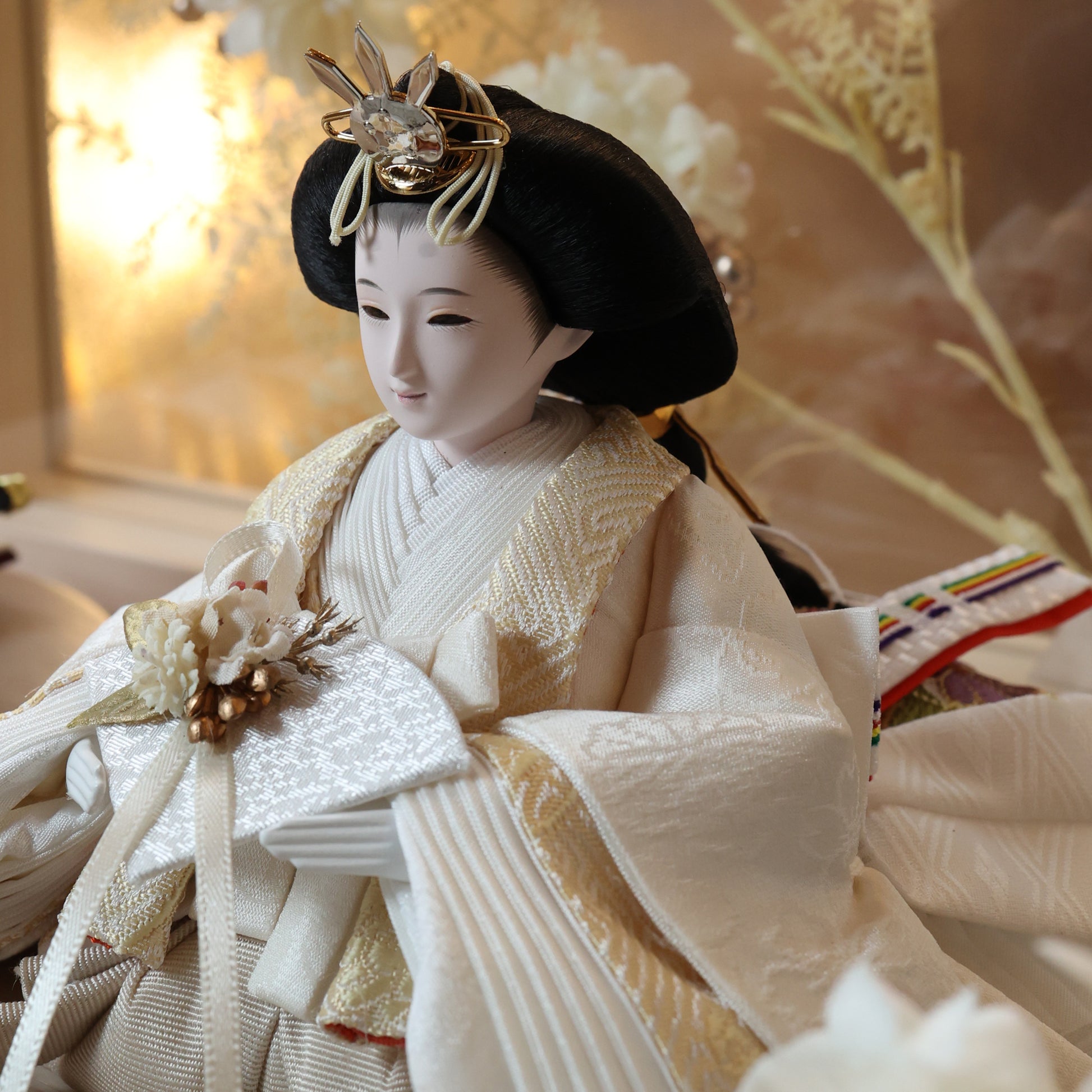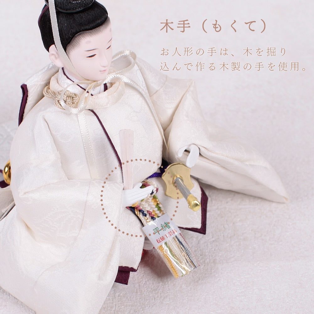 国産の栓(せん)は、美しい木目と温もりある質感が魅力の天然木です。耐久性に優れ、経年とともに味わいを深めます。台座や屏風などに使用することで、自然素材ならではの落ち着いた風合いと上質感を演出し、雛人形全体をより品格ある印象に仕上げます。