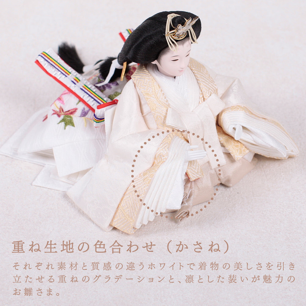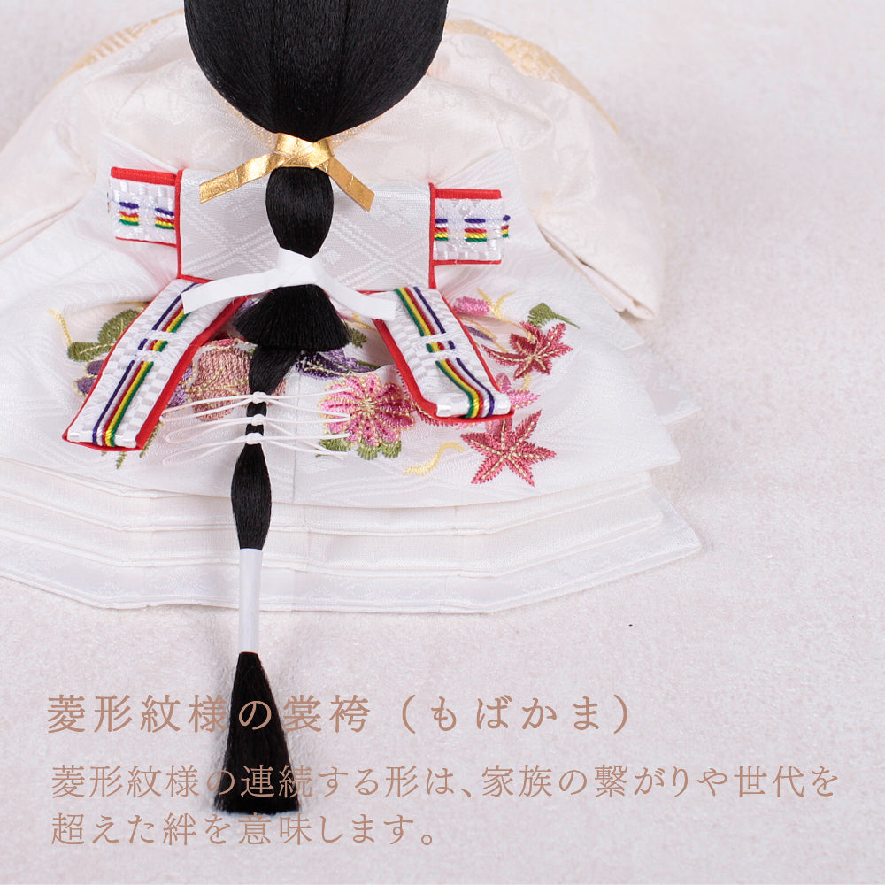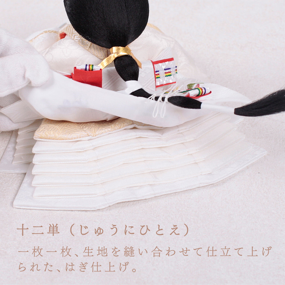 正絹は、100%絹から作られた生地で、「本絹」とも呼ばれます。蚕の繭を原料にし、複雑な工程を経て製造されます。絹糸を織って生地に仕上げることで、独特の光沢と滑らかな質感が生まれ、高級感のあるお人形が完成します。正絹は伝統的な工芸品に広く用いられ、その美しさが際立っています。