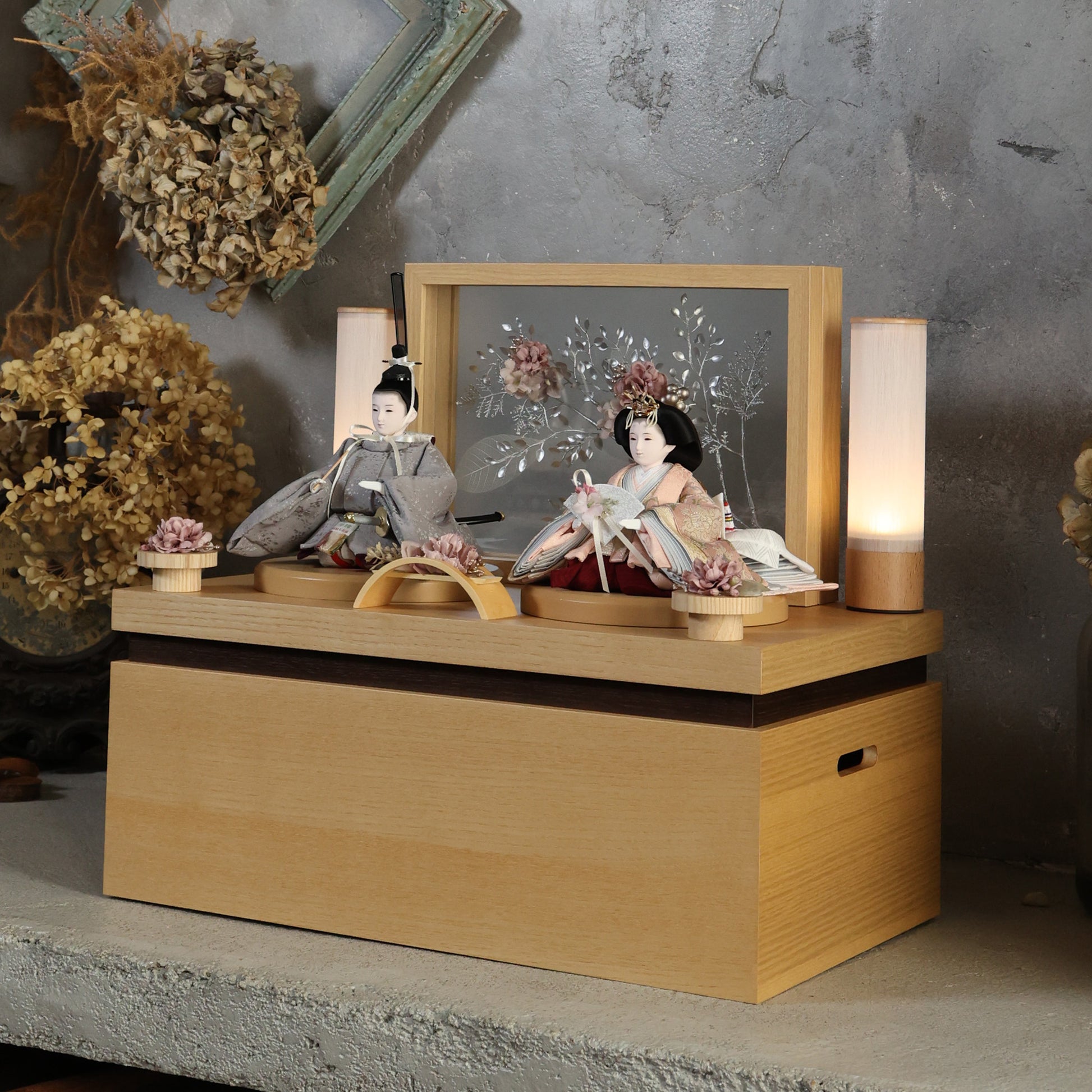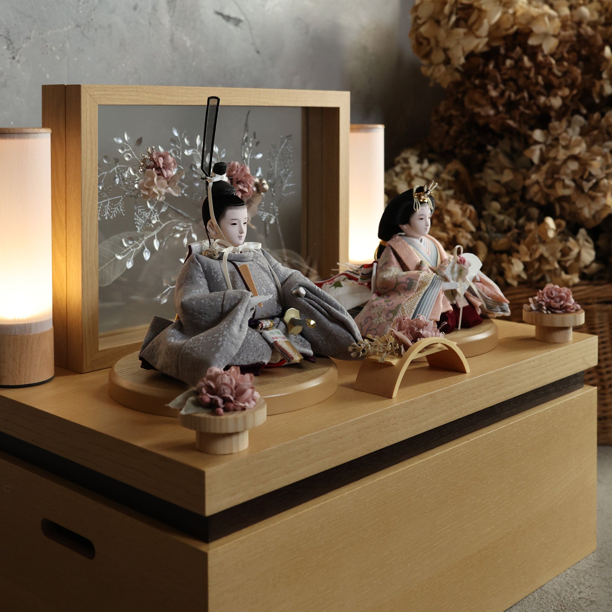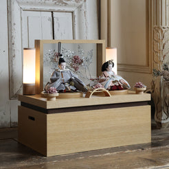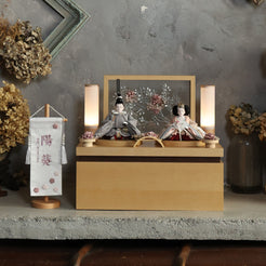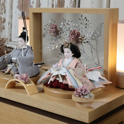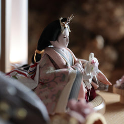 国産の栓(せん)は、美しい木目と温もりある質感が魅力の天然木です。耐久性に優れ、経年とともに味わいを深めます。台座や屏風などに使用することで、自然素材ならではの落ち着いた風合いと上質感を演出し、雛人形全体をより品格ある印象に仕上げます。