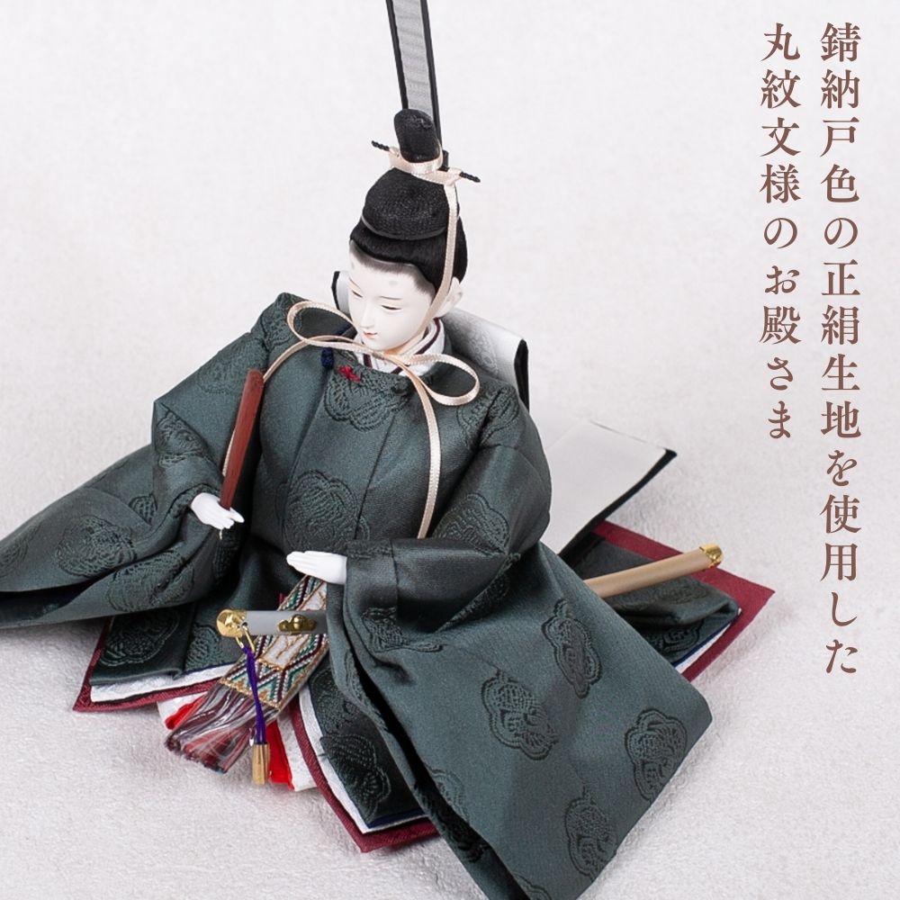 錆納戸色の正絹生地を使用した丸紋文様のお殿さま