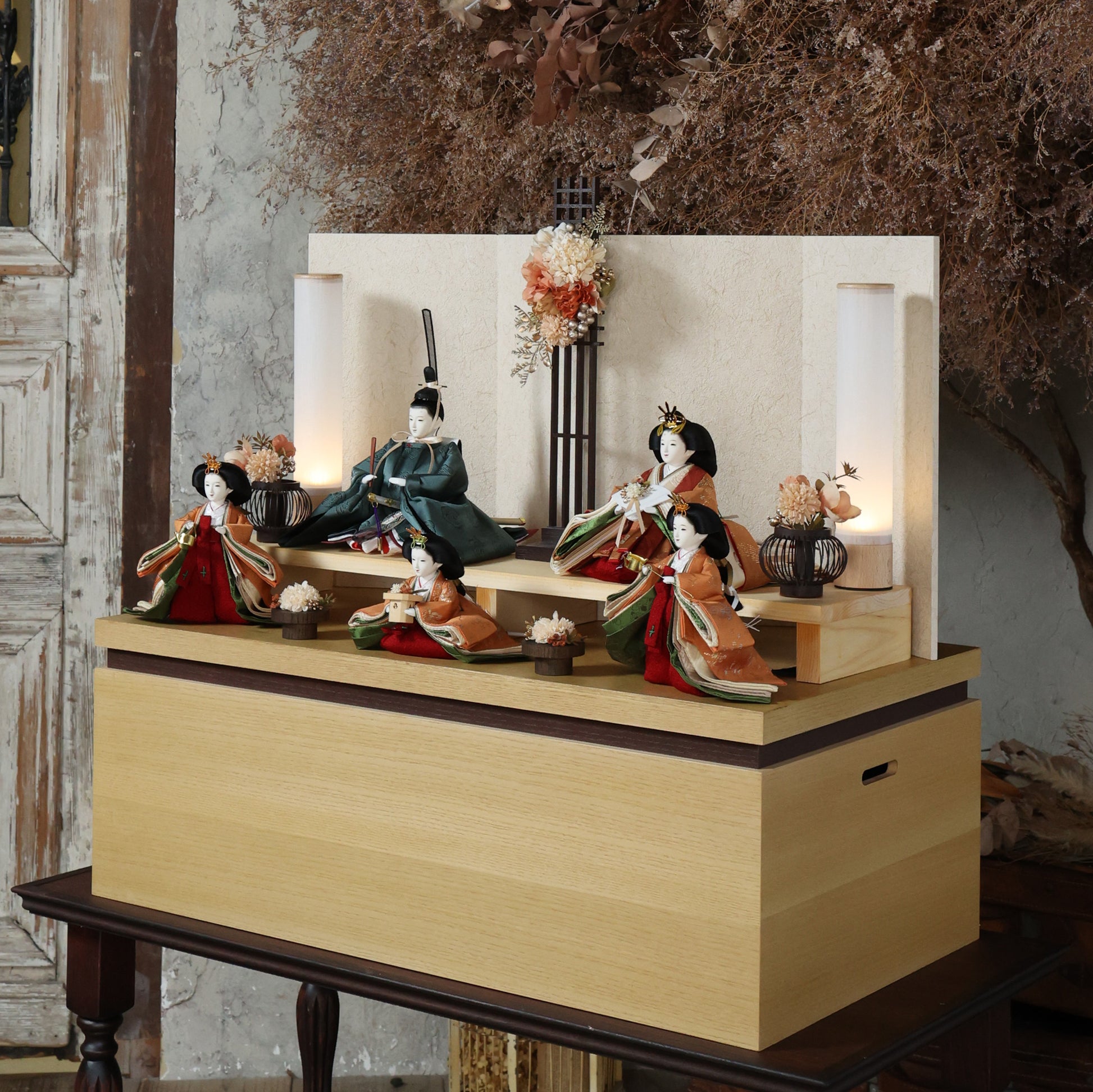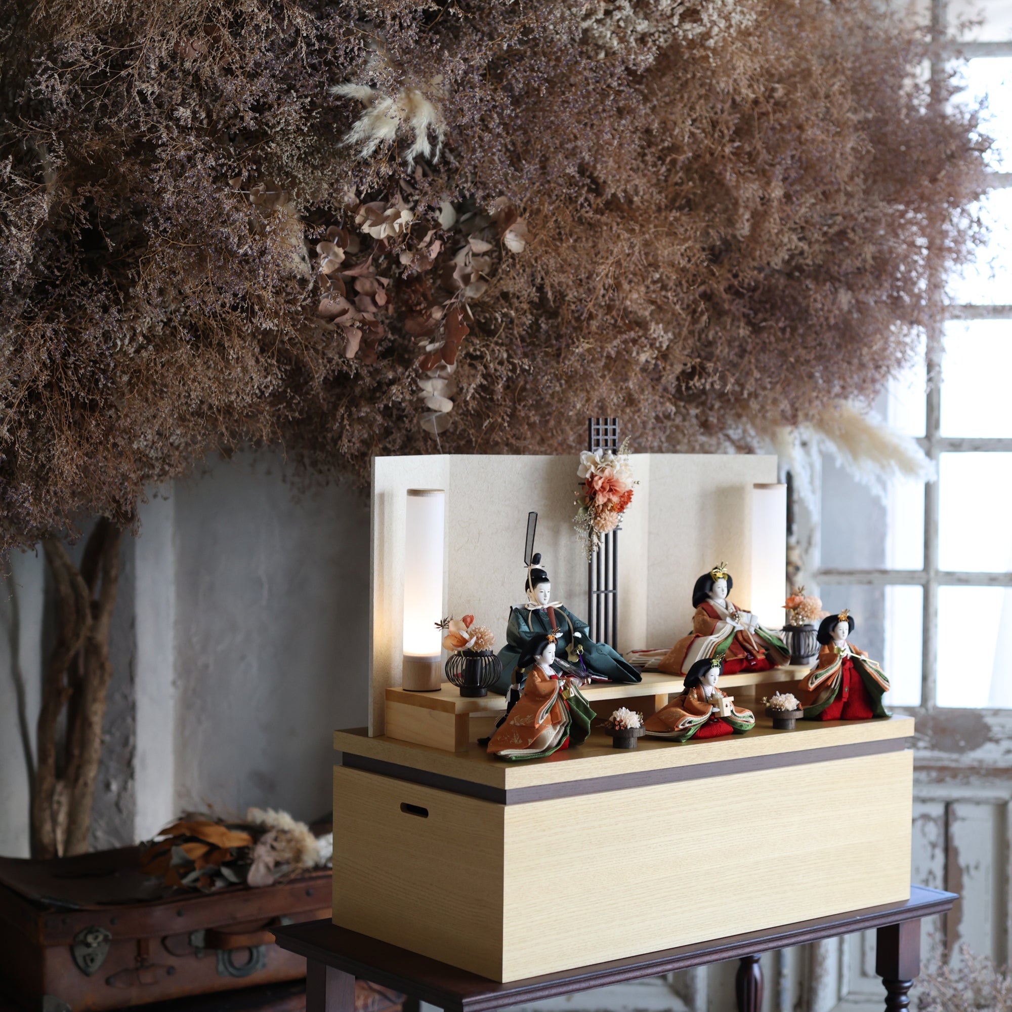 国産の栓(せん)は、美しい木目と温もりある質感が魅力の天然木です。耐久性に優れ、経年とともに味わいを深めます。台座や屏風などに使用することで、自然素材ならではの落ち着いた風合いと上質感を演出し、雛人形全体をより品格ある印象に仕上げます。