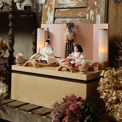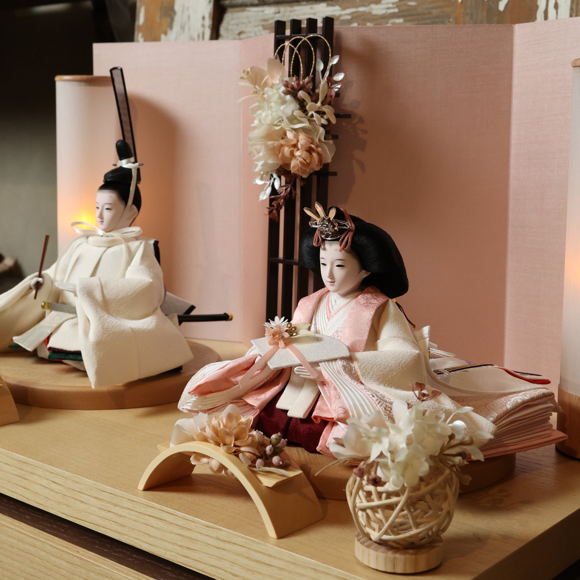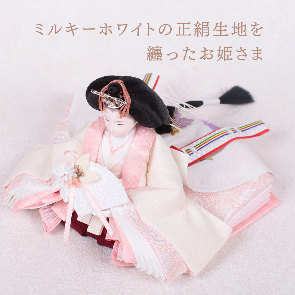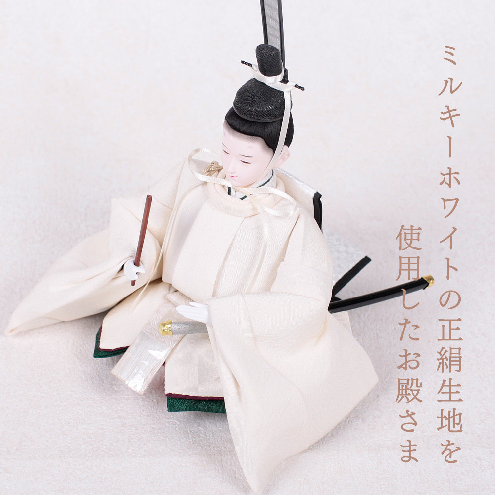 ミルキーホワイトの雛人形は、赤ちゃんの純真さと家族の幸福を象徴し、優雅で温かな雰囲気を演出します。