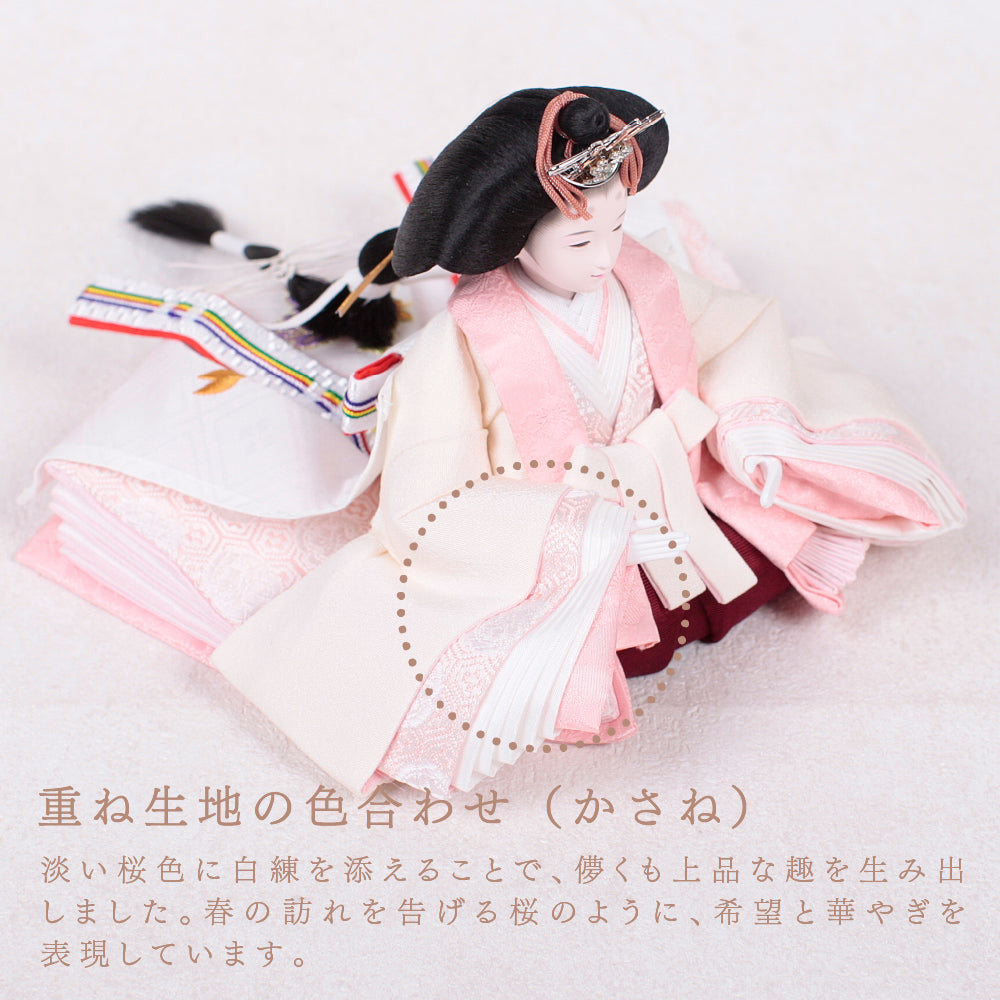 ミルキーホワイトの雛人形は、赤ちゃんの純真さを象徴し、家族の幸福と繁栄を願う清らかで優雅な存在です。