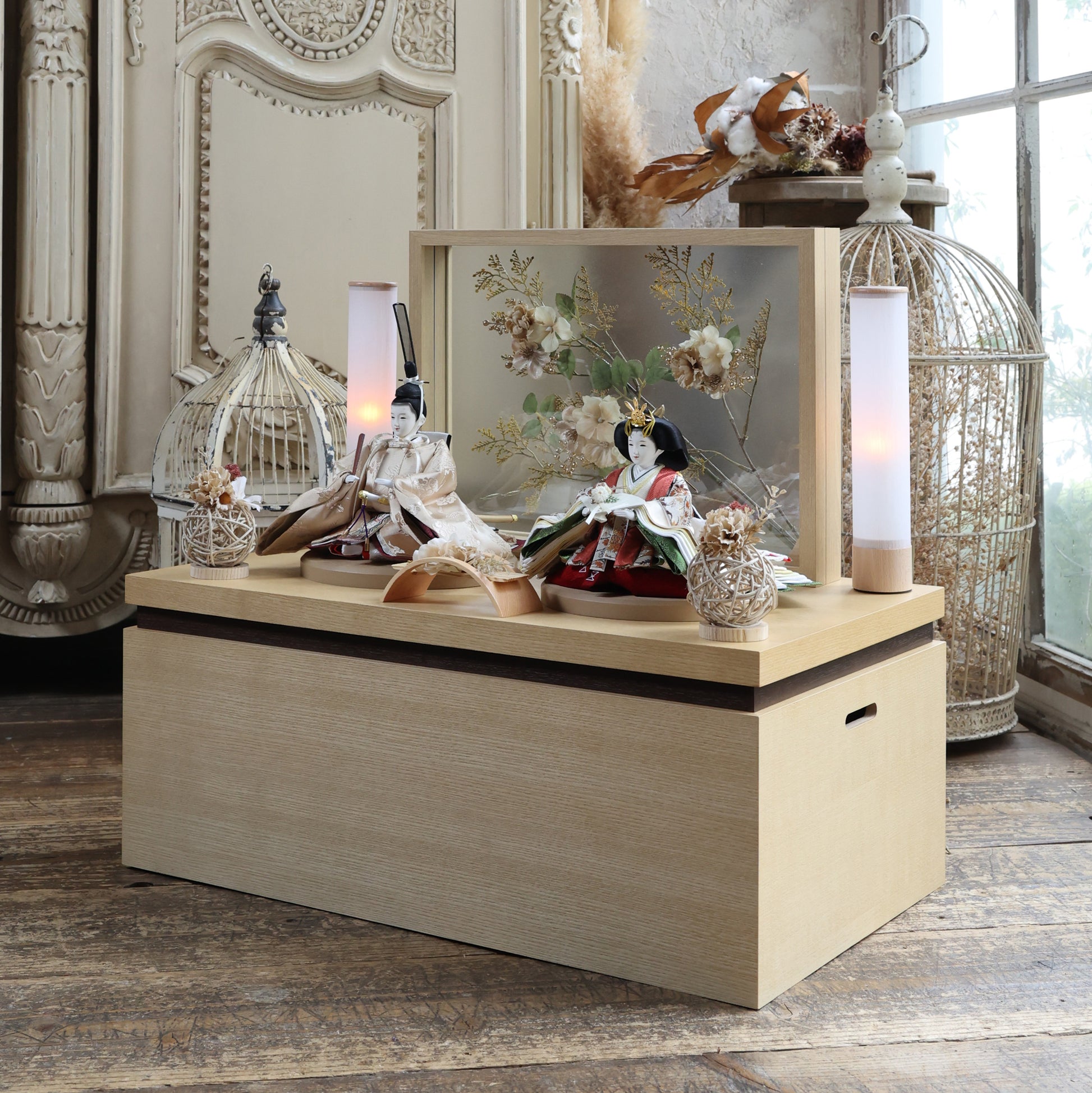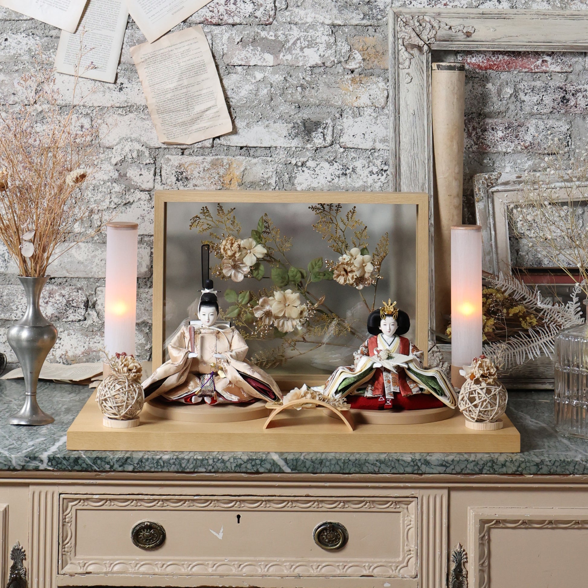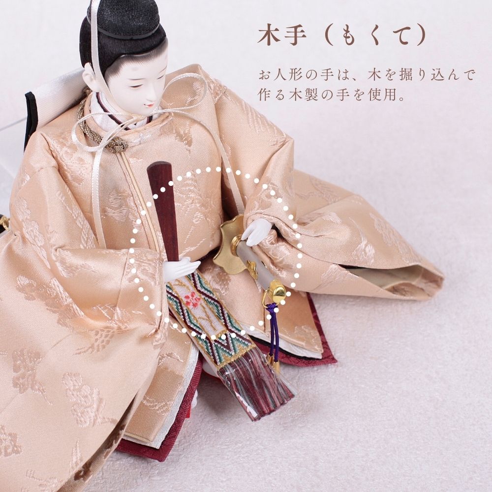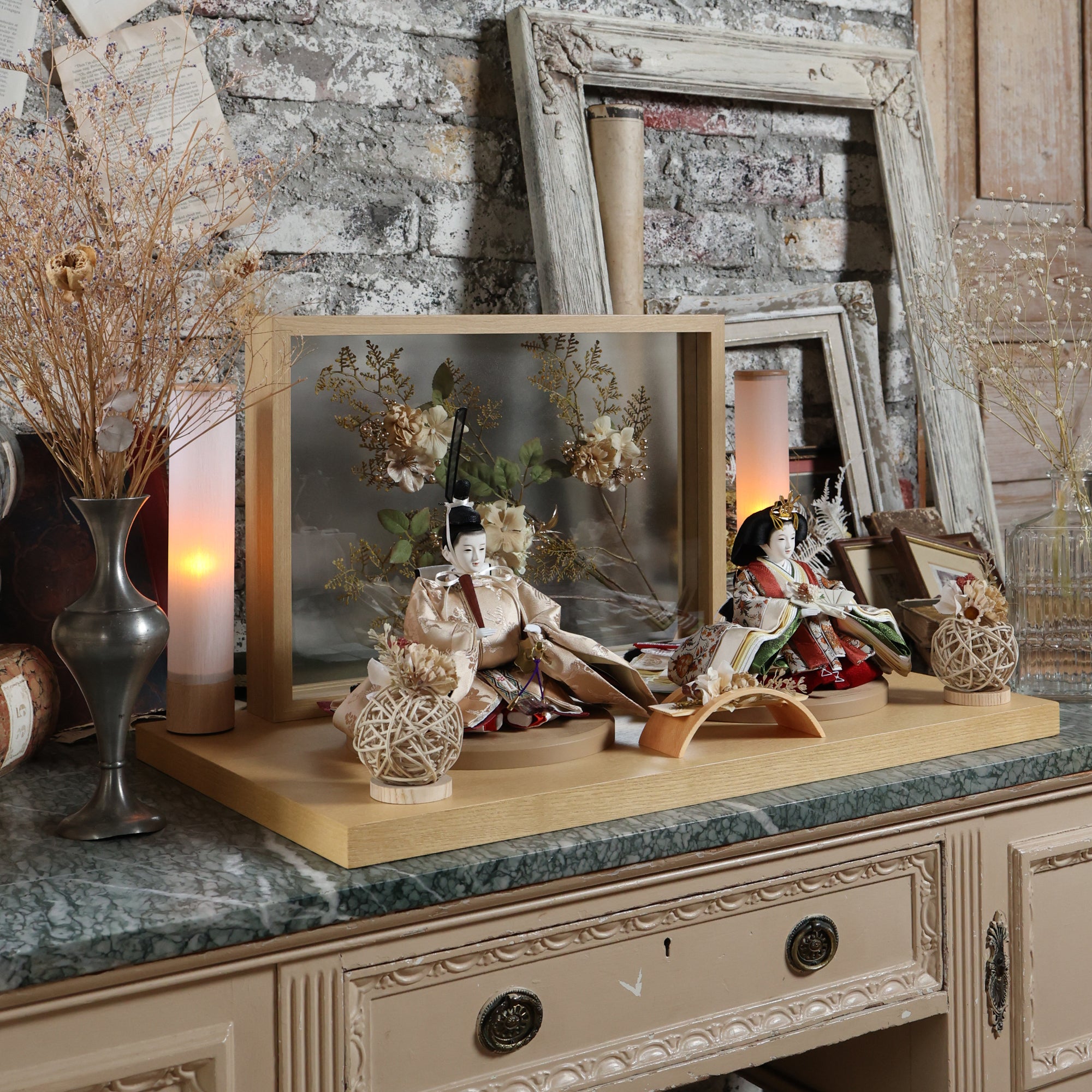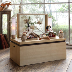 国産の栓(せん)は、美しい木目と温もりある質感が魅力の天然木です。耐久性に優れ、経年とともに味わいを深めます。台座や屏風などに使用することで、自然素材ならではの落ち着いた風合いと上質感を演出し、雛人形全体をより品格ある印象に仕上げます。