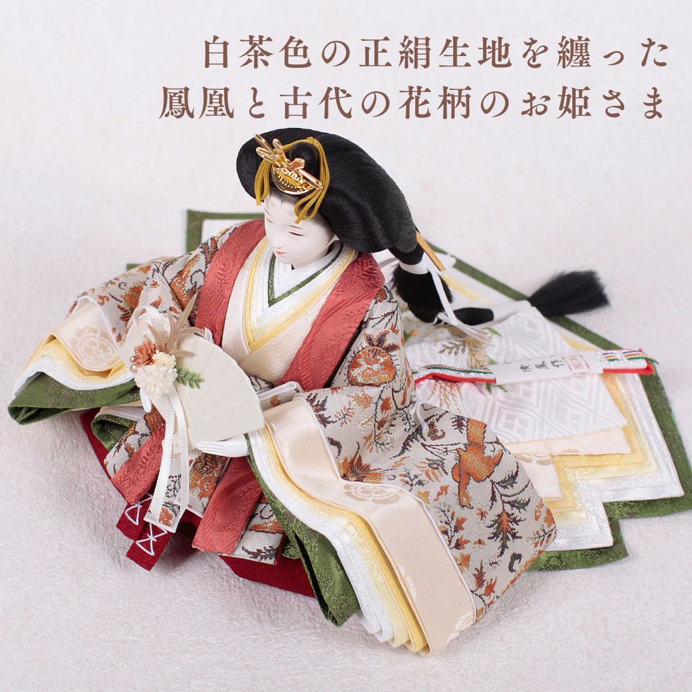白茶色の正絹生地を纏った鳳凰と古代の花柄のお姫さま
