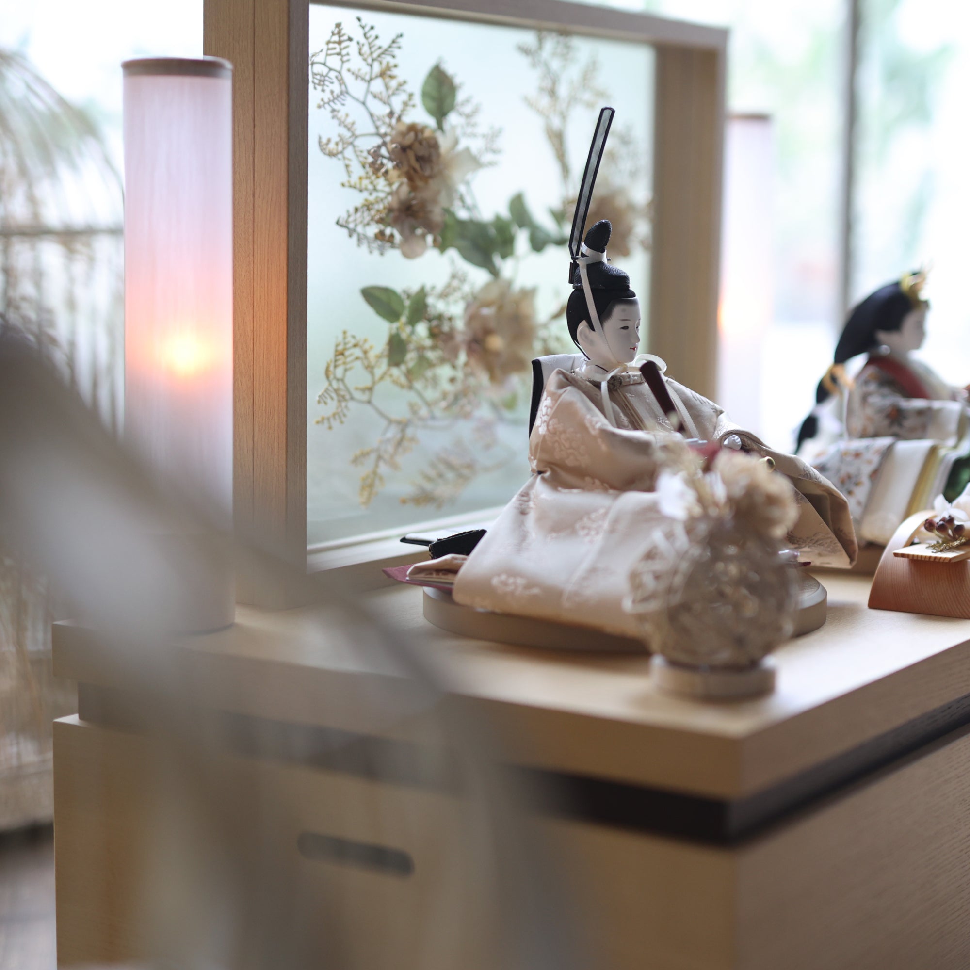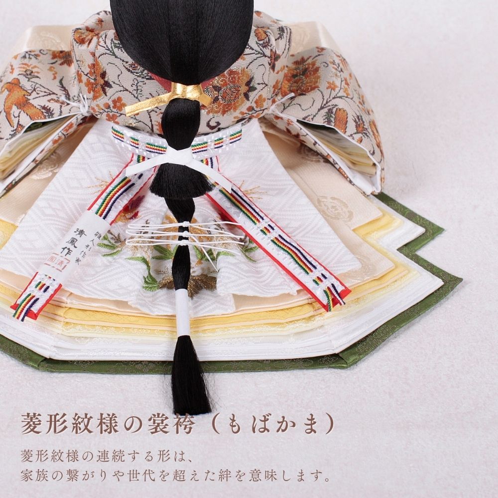 お雛様の形は、正三角形が取れた形が一番美しいとされており、清鳳のお人形は、とても美しい造形美でたくさんの人を魅了してます。