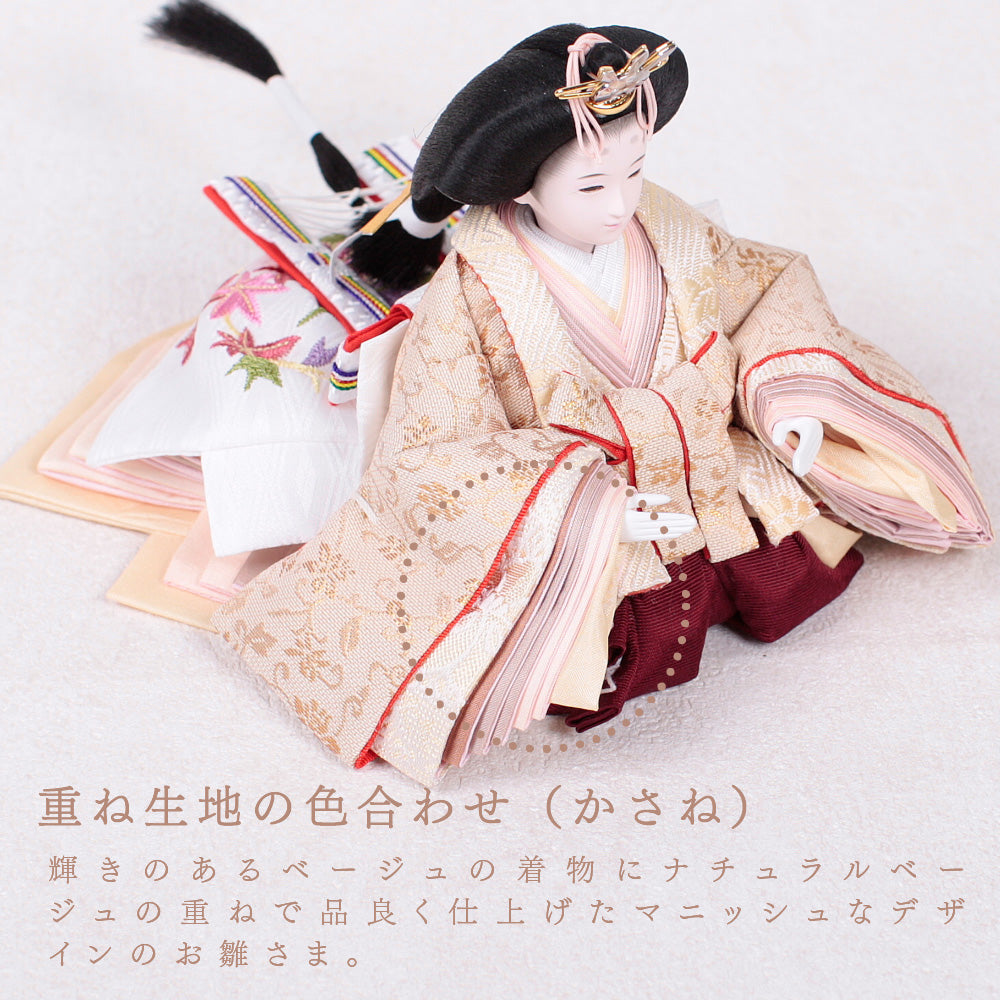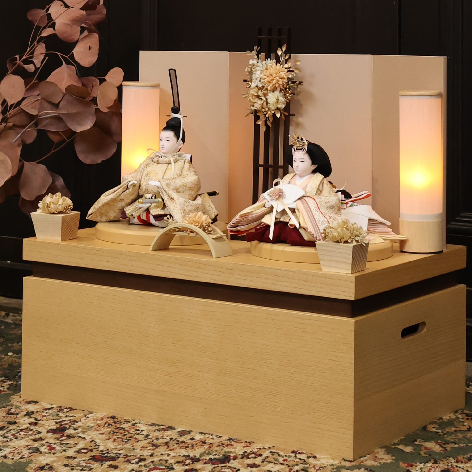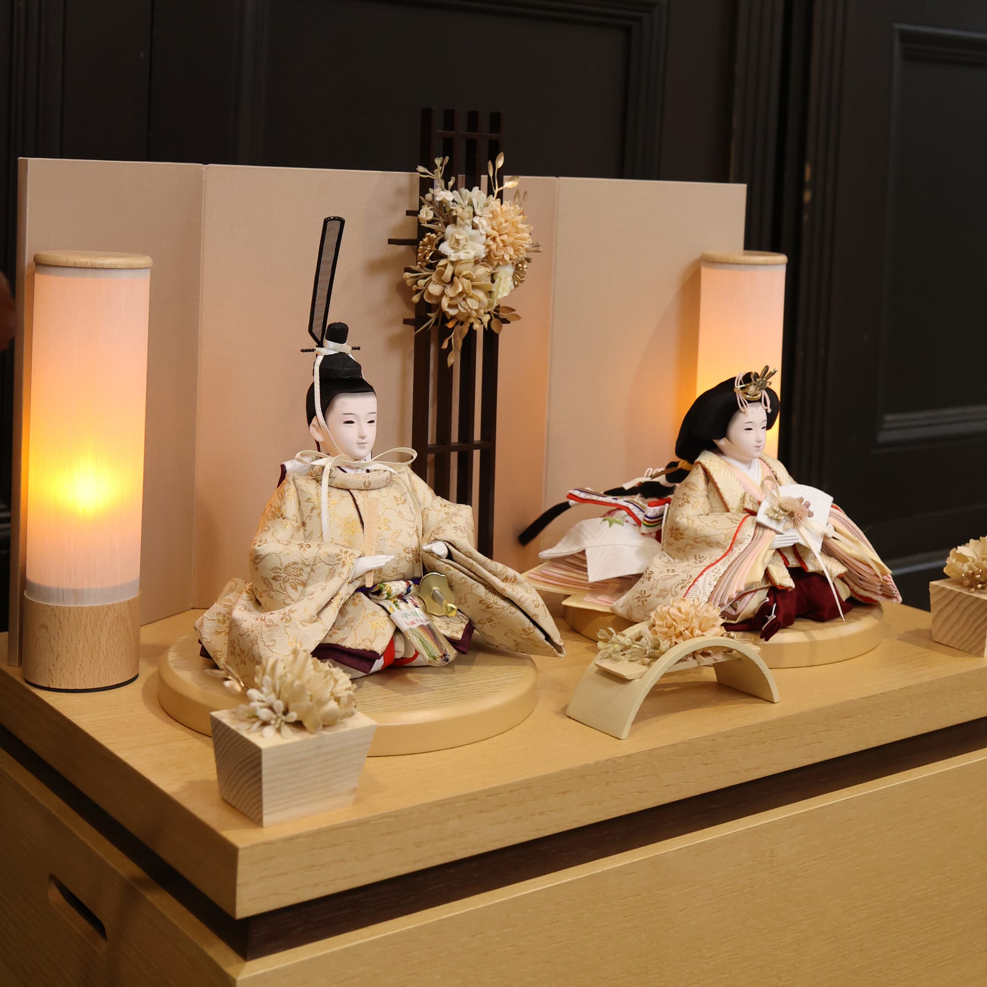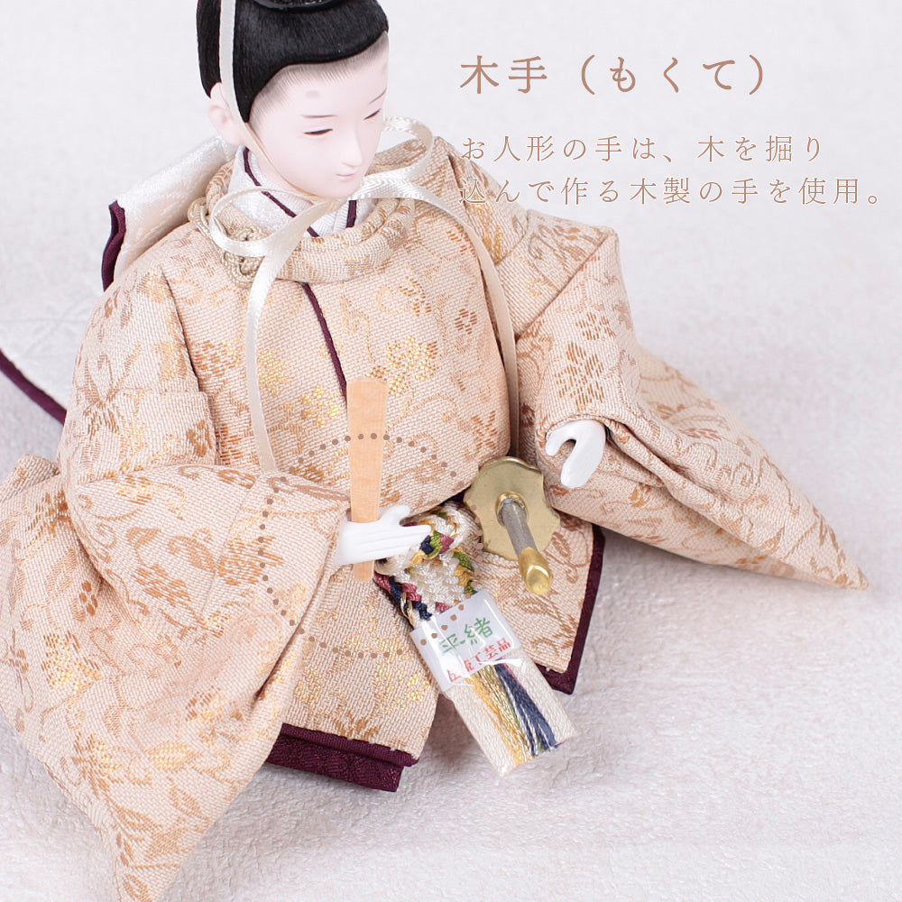 国産の栓(せん)は、美しい木目と温もりある質感が魅力の天然木です。耐久性に優れ、経年とともに味わいを深めます。台座や屏風などに使用することで、自然素材ならではの落ち着いた風合いと上質感を演出し、雛人形全体をより品格ある印象に仕上げます。