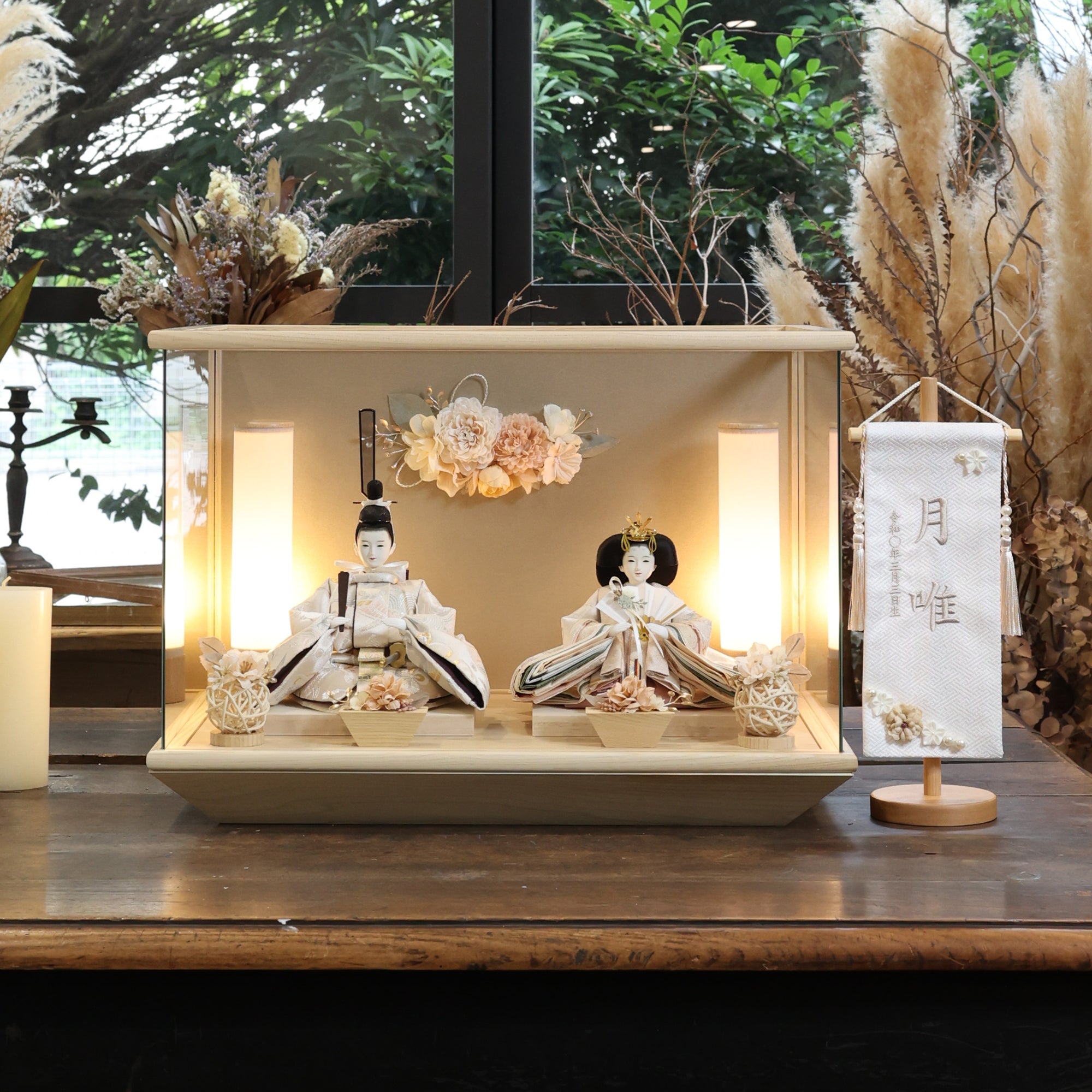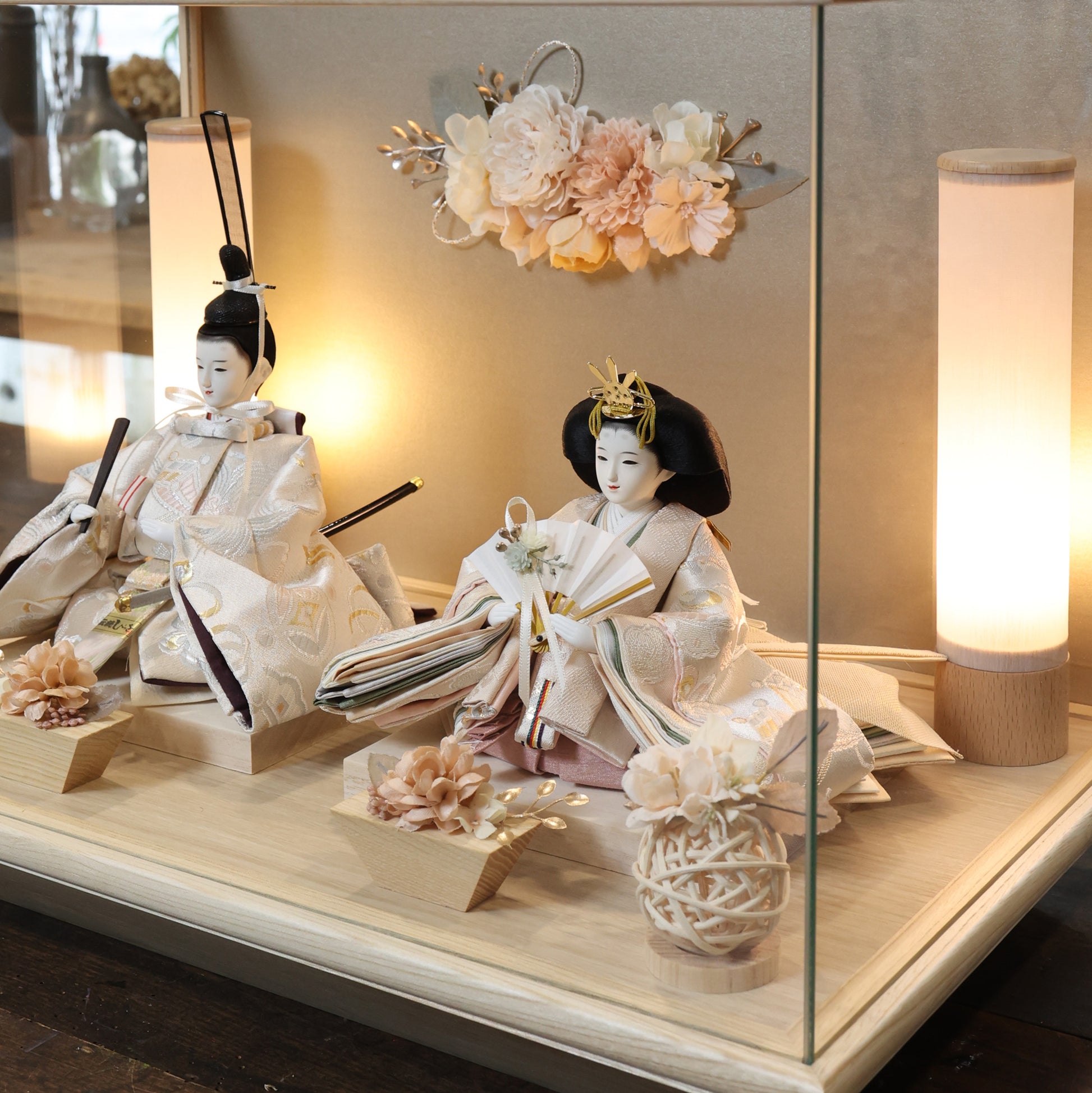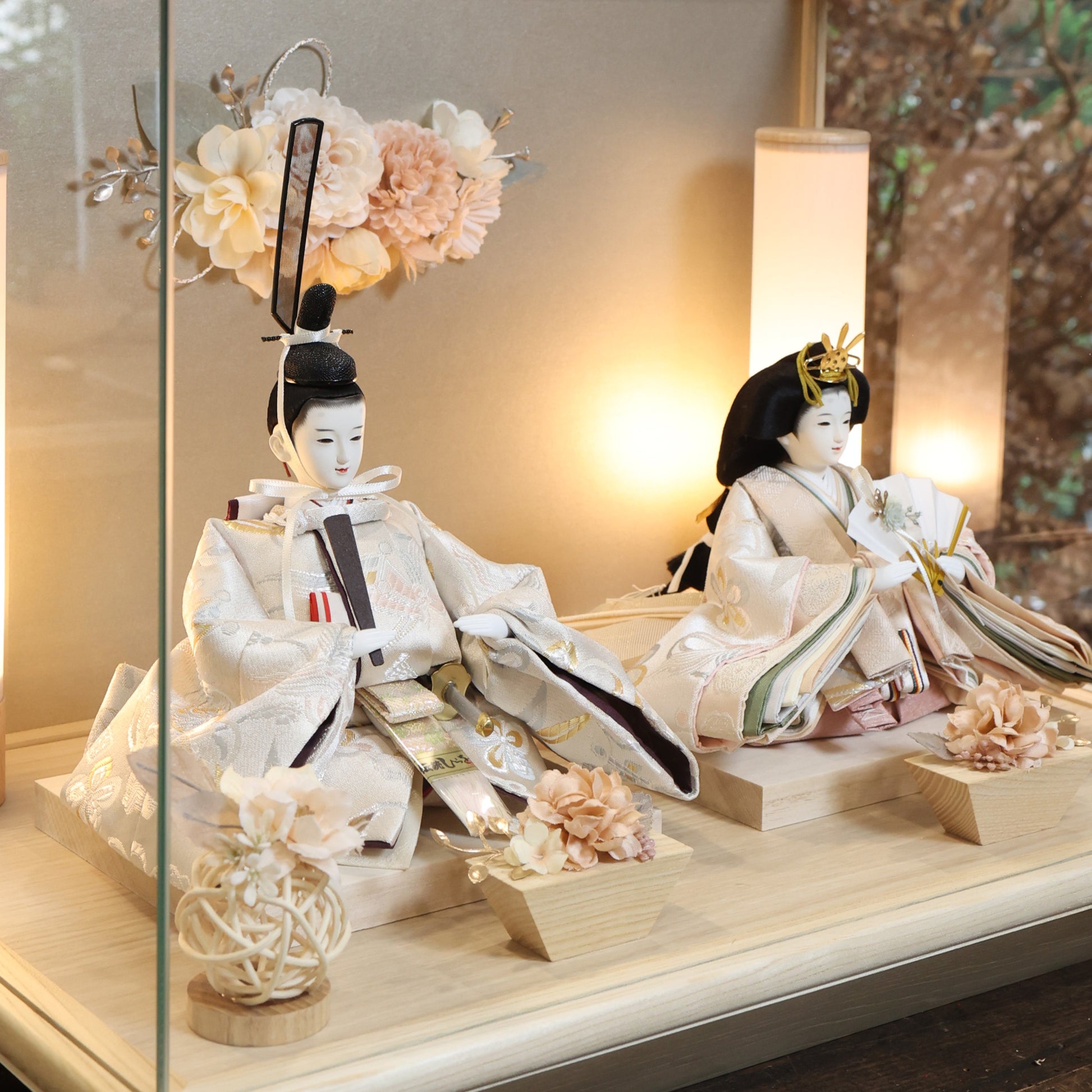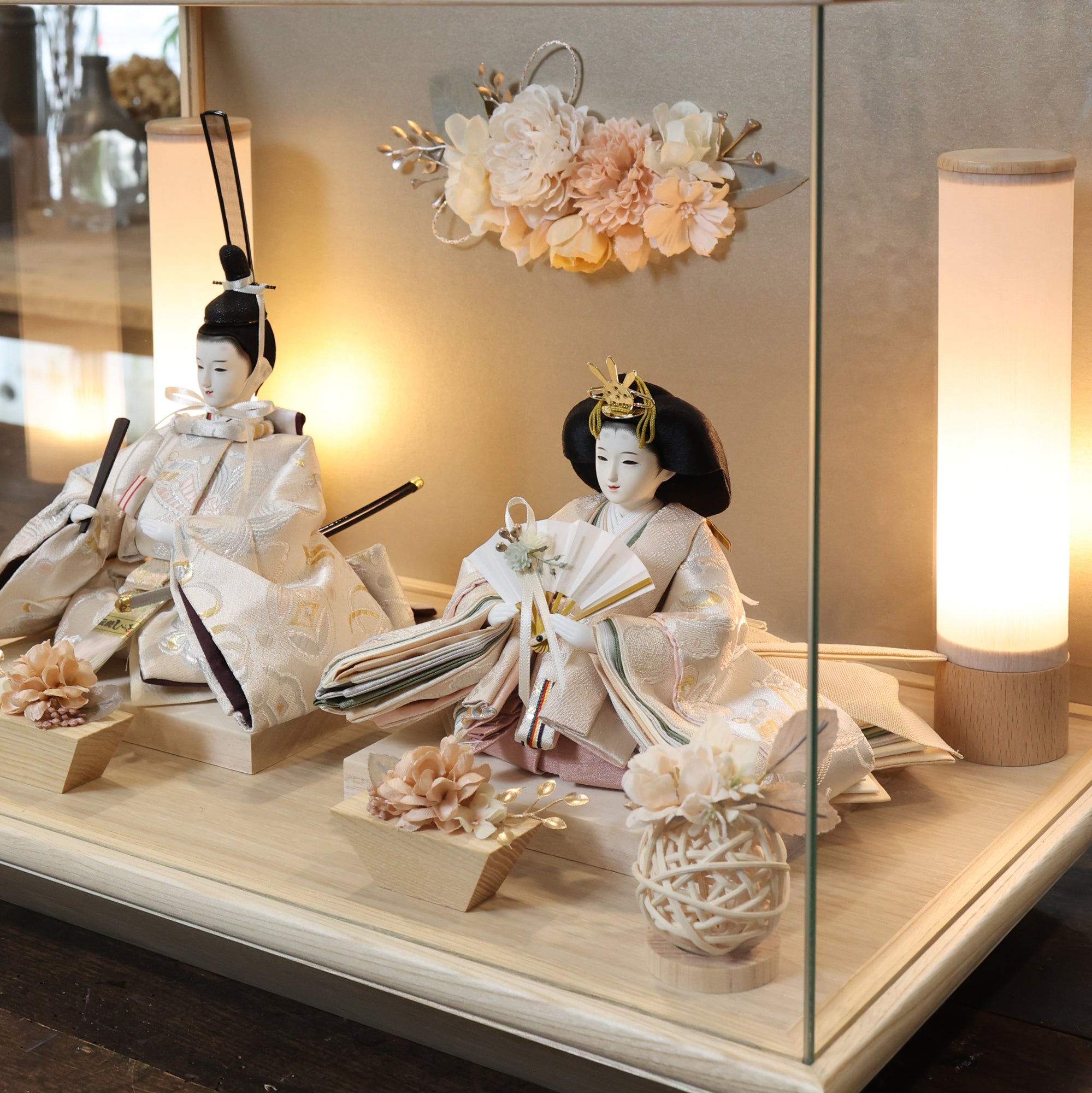 通常2mm厚が一般的な中、当店ではより高品質なAGC製3mmガラスを採用しています。厚みが増すことで強度と安全性が高まり、透明度の高いクリアな美しさを保ちます。大切な雛人形を守りながら、高級感のある見栄えを実現しています。