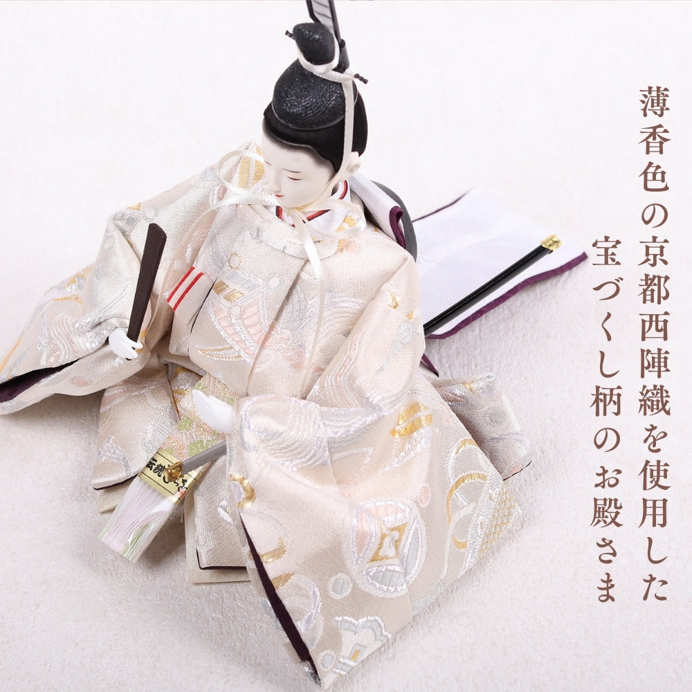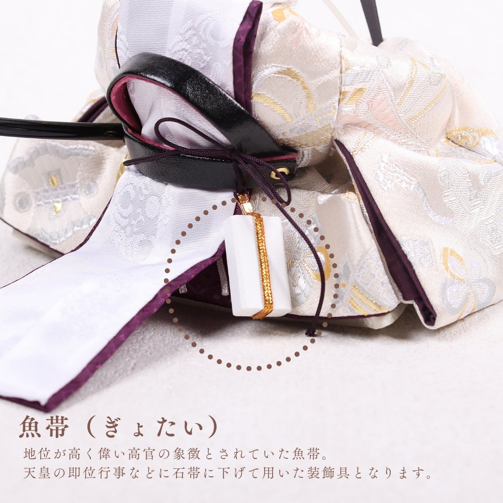 国産の栓(せん)は、美しい木目と温もりある質感が魅力の天然木です。耐久性に優れ、経年とともに味わいを深めます。台座や屏風などに使用することで、自然素材ならではの落ち着いた風合いと上質感を演出し、雛人形全体をより品格ある印象に仕上げます。