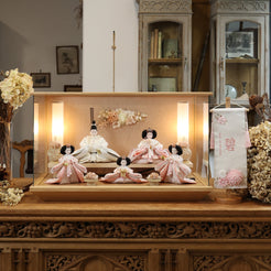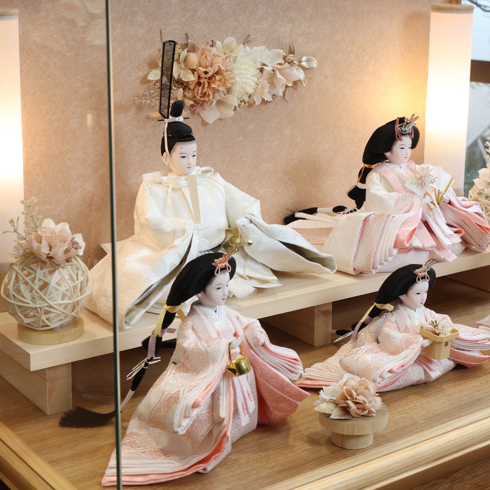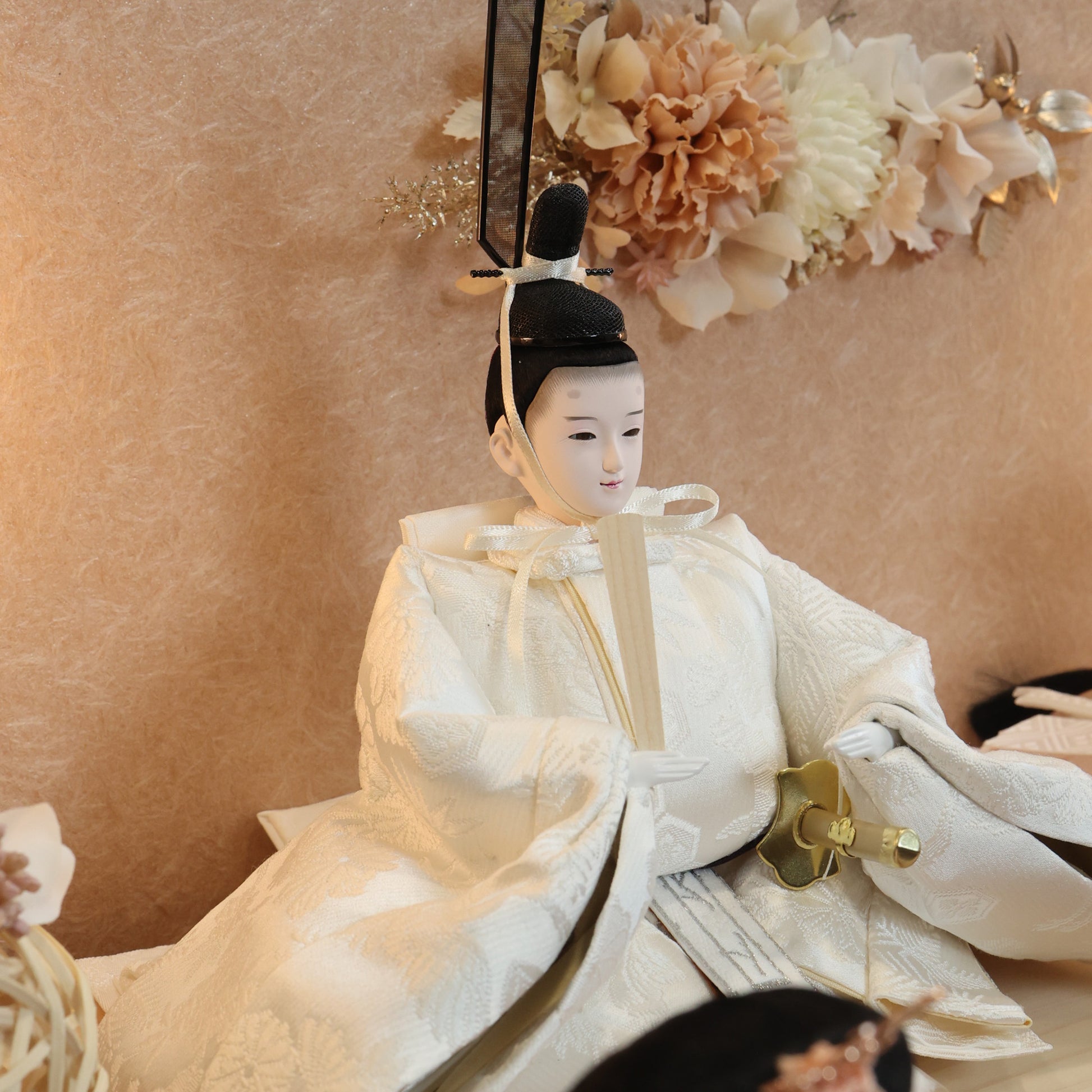 松竹梅文様が施されたパールホワイトの雛人形は、赤ちゃんの無垢な未来を象徴する特別な宝物です。松は長寿、竹はしなやかさ、梅は冬を越える強さを表し、健やかな成長と逆境に負けない心を願います。パールホワイトの輝きは、純真さと未来への無限の可能性を映し出し、新しい人生の始まりを祝福します。