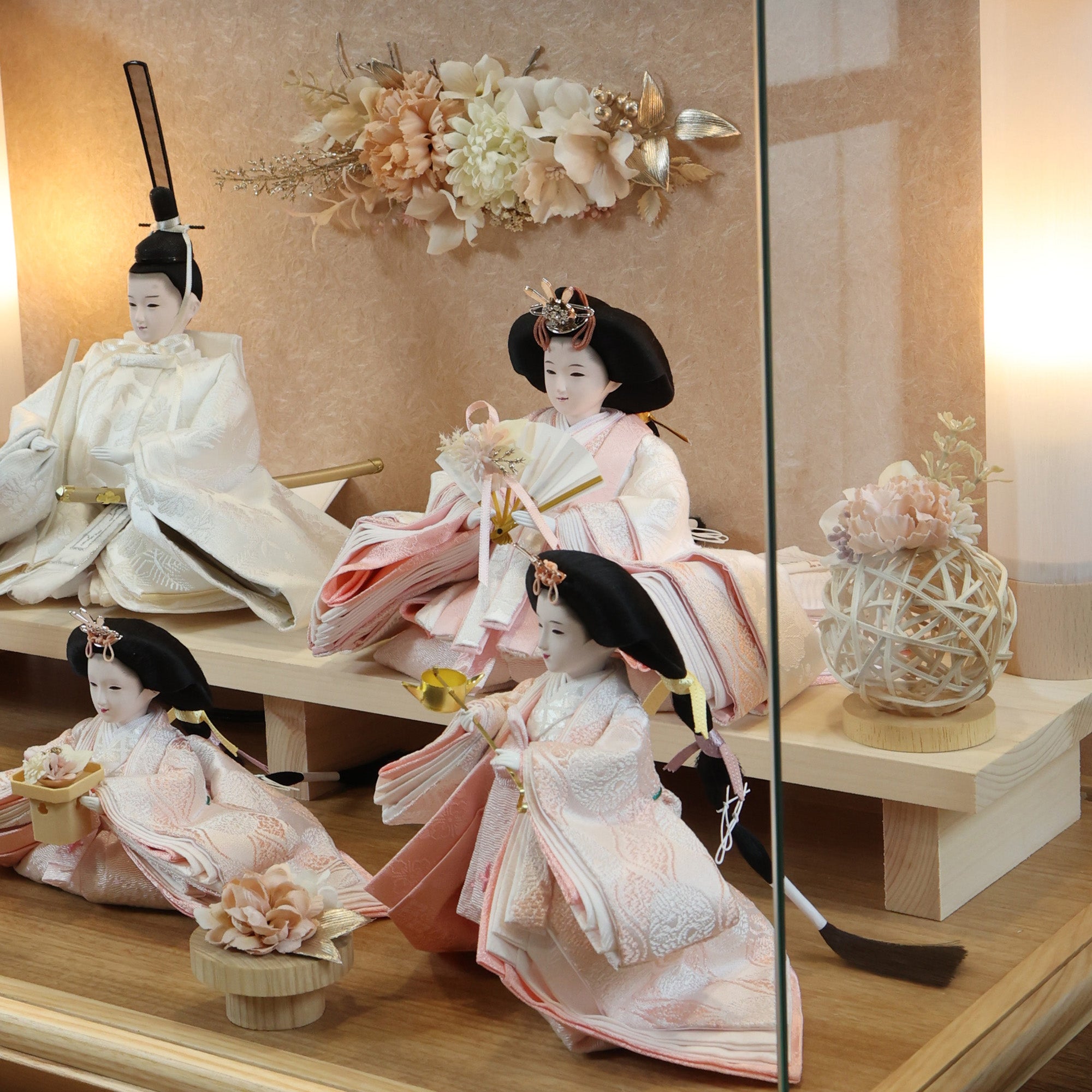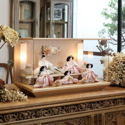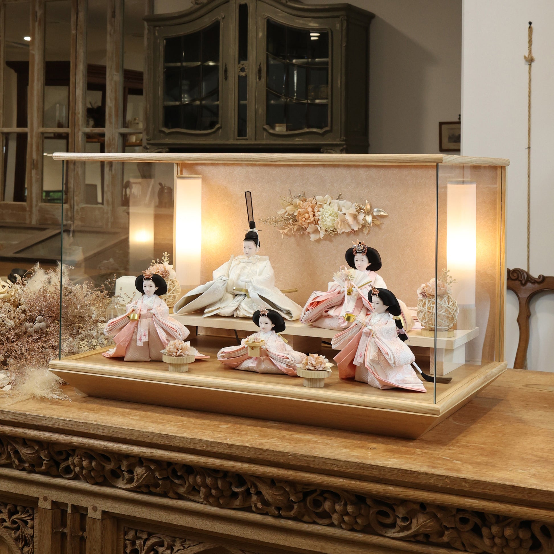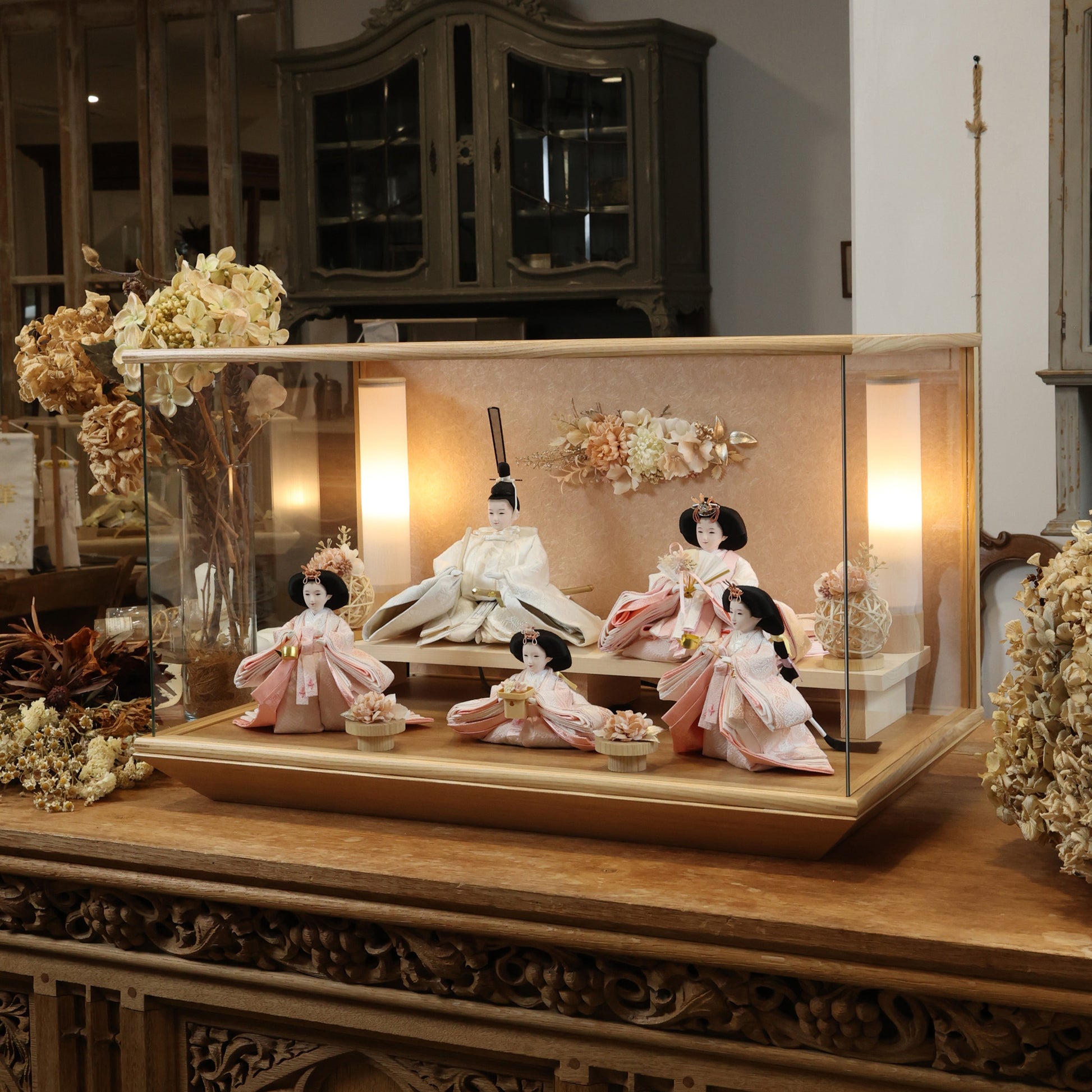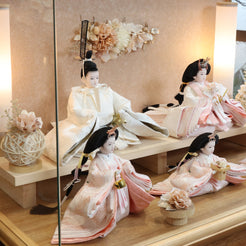 通常2mm厚が一般的な中、当店ではより高品質なAGC製3mmガラスを採用しています。厚みが増すことで強度と安全性が高まり、透明度の高いクリアな美しさを保ちます。大切な雛人形を守りながら、高級感のある見栄えを実現しています。