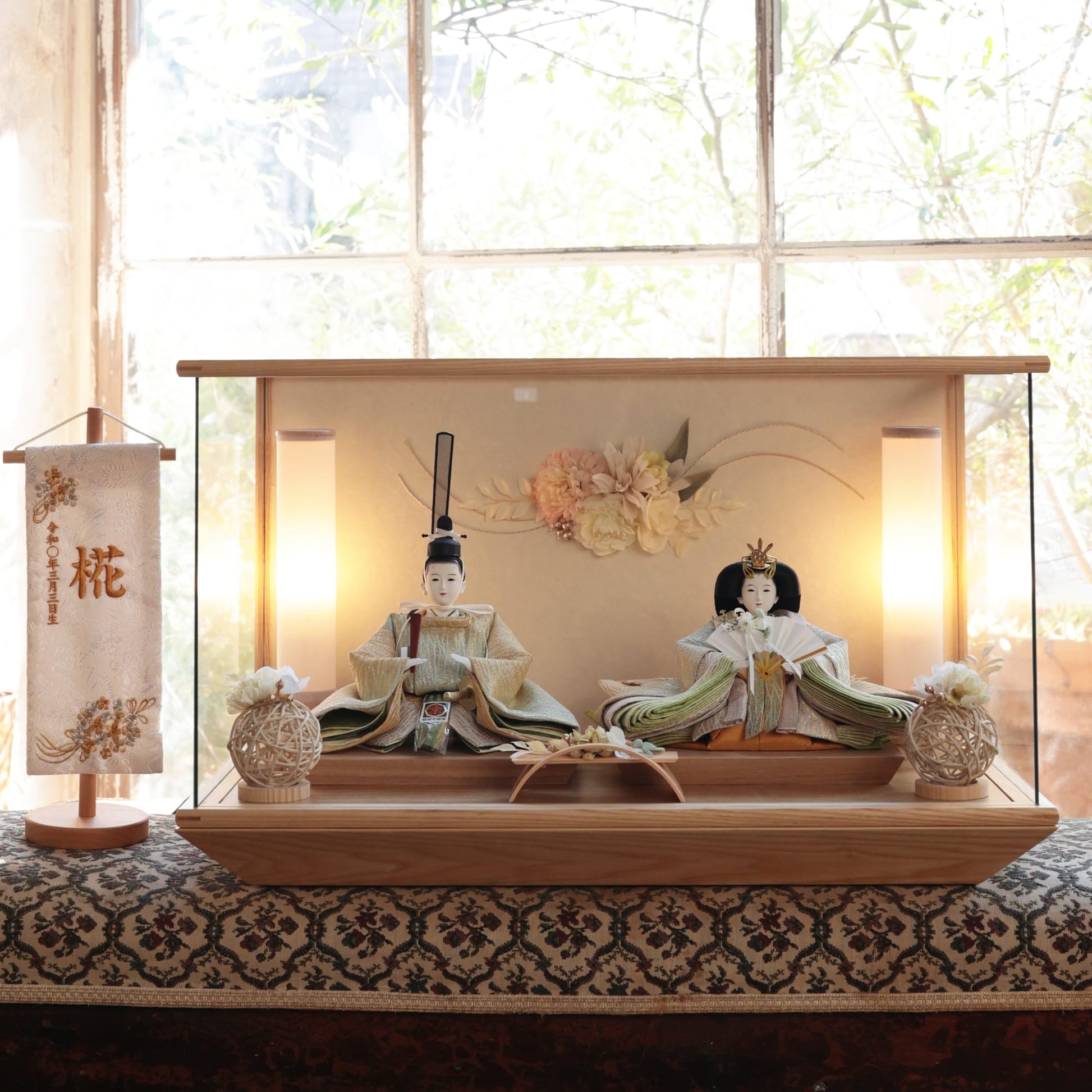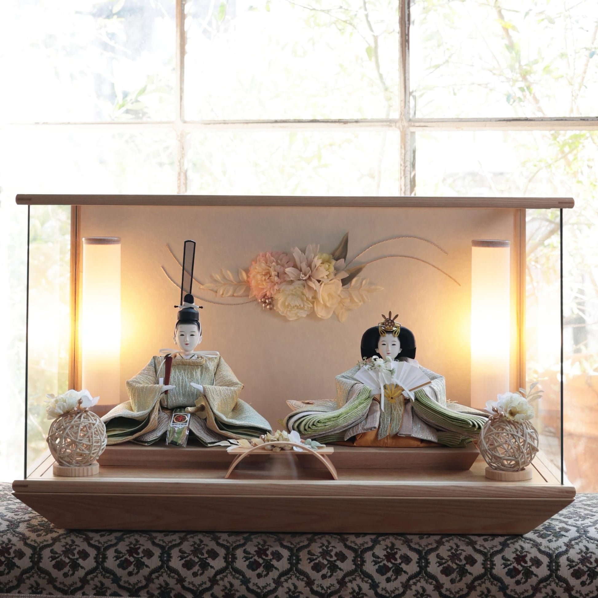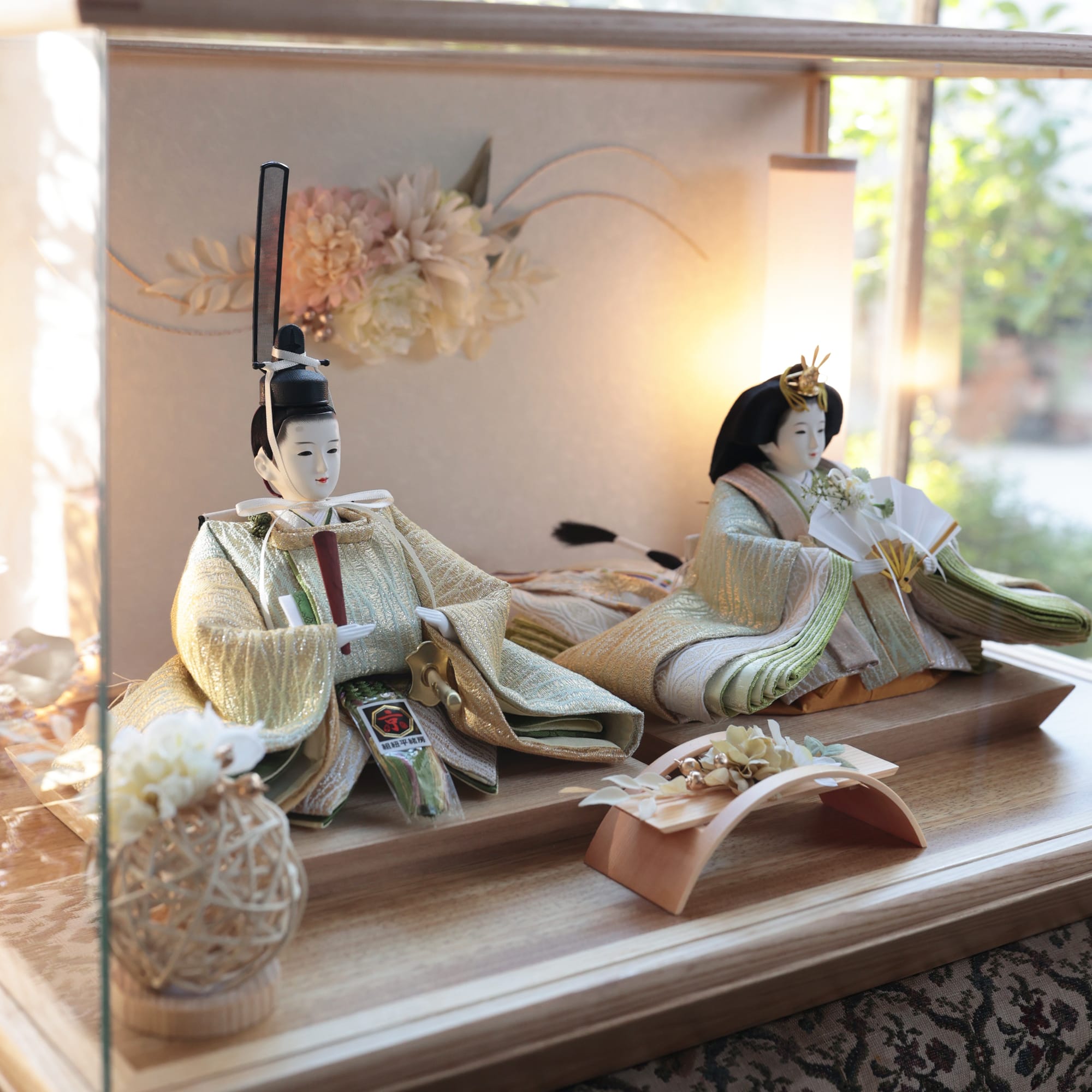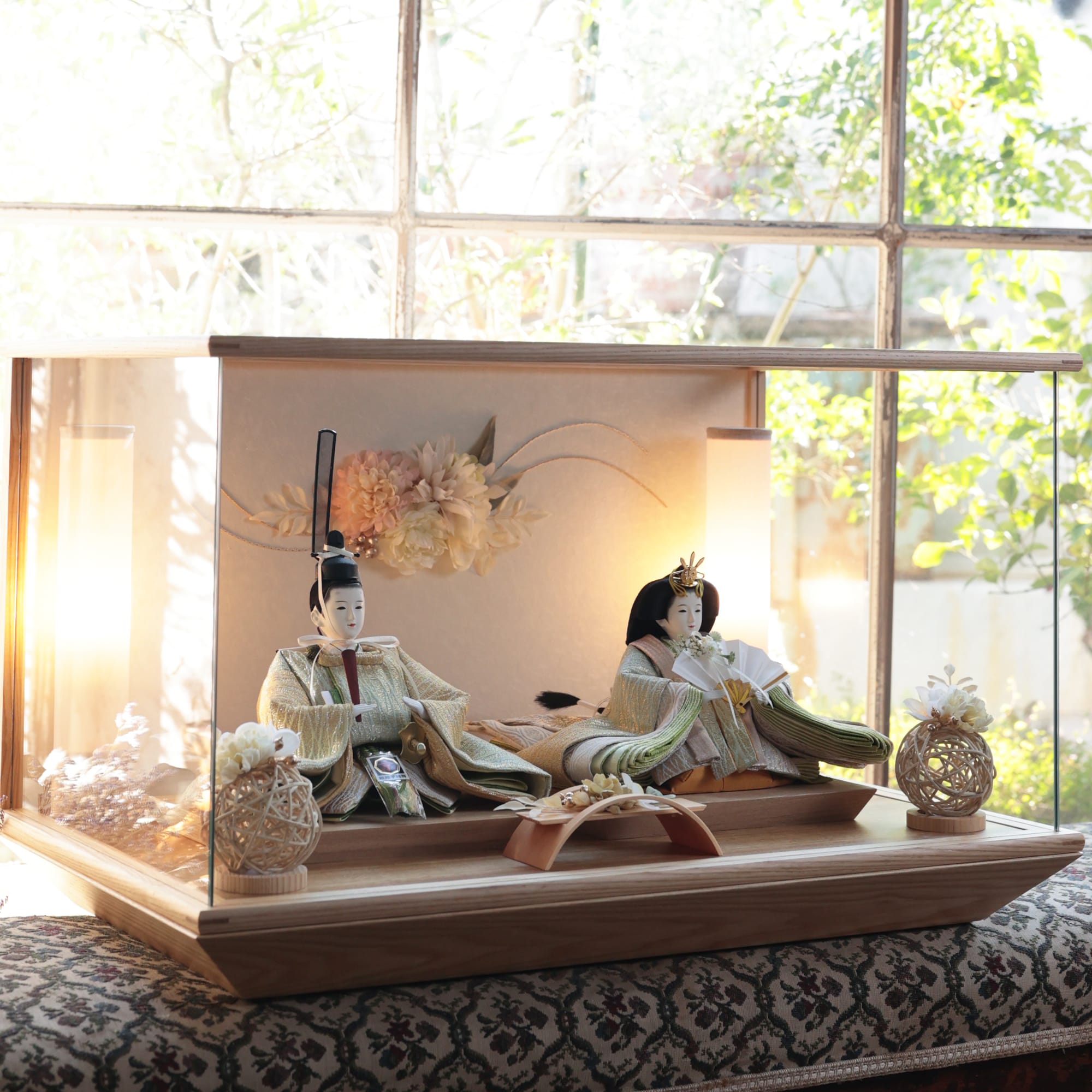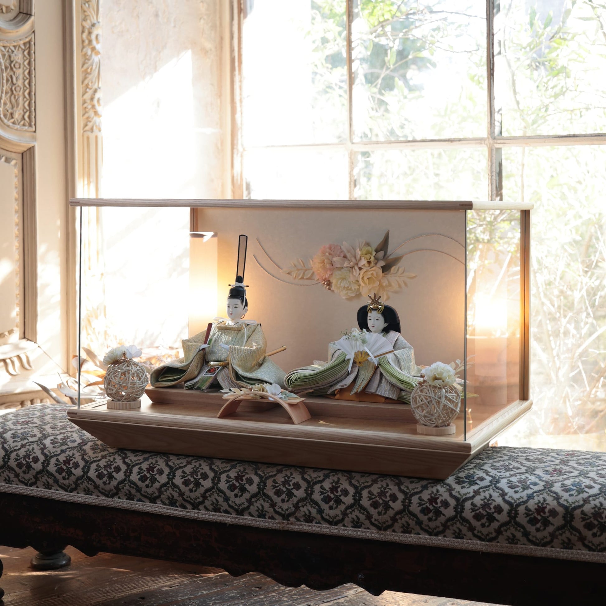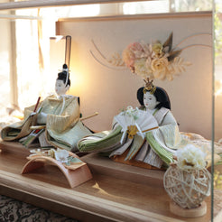 通常2mm厚が一般的な中、当店ではより高品質なAGC製3mmガラスを採用しています。厚みが増すことで強度と安全性が高まり、透明度の高いクリアな美しさを保ちます。大切な雛人形を守りながら、高級感のある見栄えを実現しています。