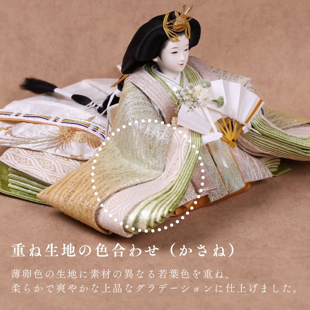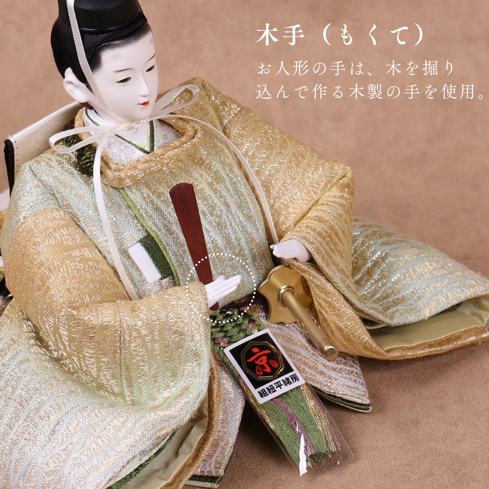 国産の栓(せん)は、美しい木目と温もりある質感が魅力の天然木です。耐久性に優れ、経年とともに味わいを深めます。台座や屏風などに使用することで、自然素材ならではの落ち着いた風合いと上質感を演出し、雛人形全体をより品格ある印象に仕上げます。