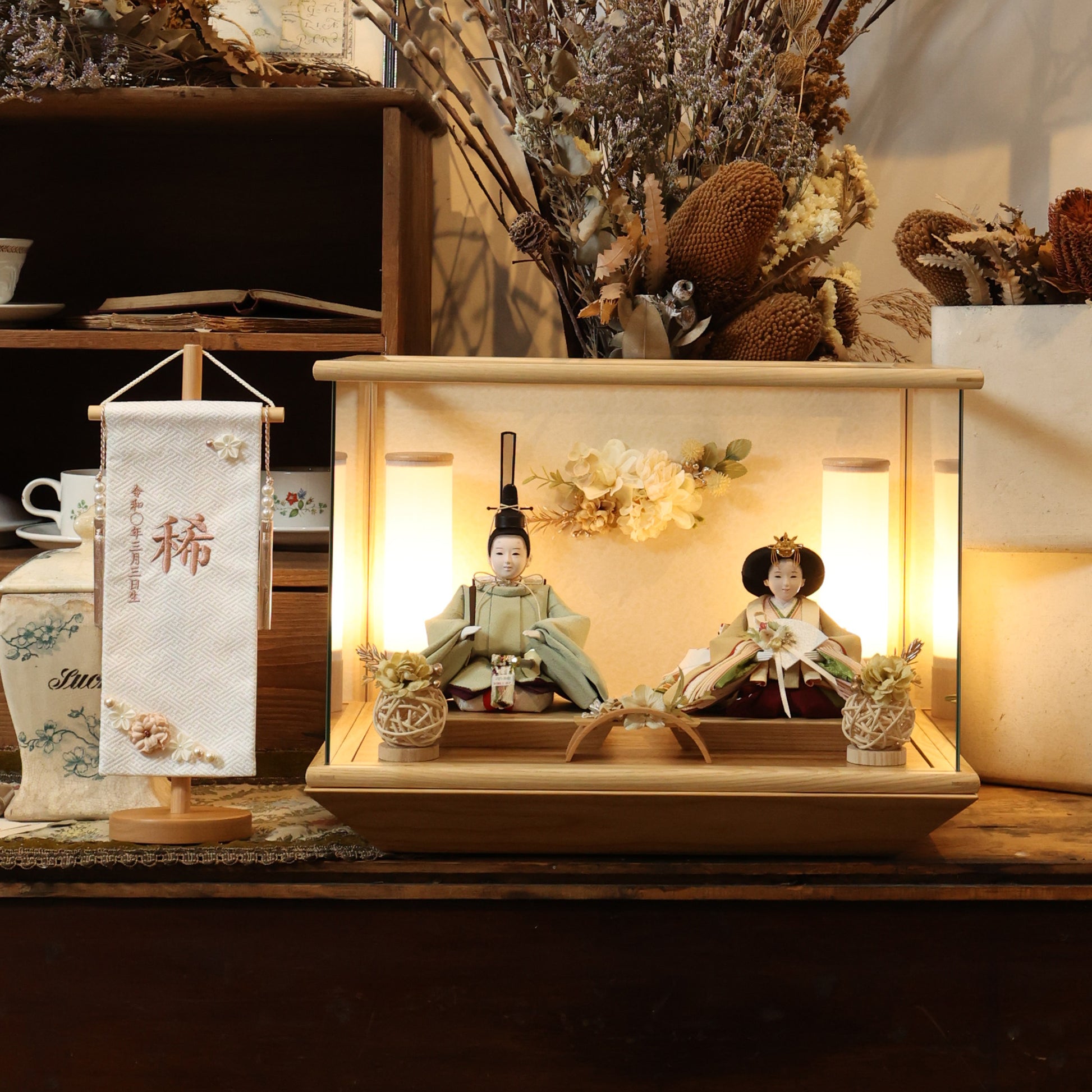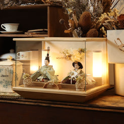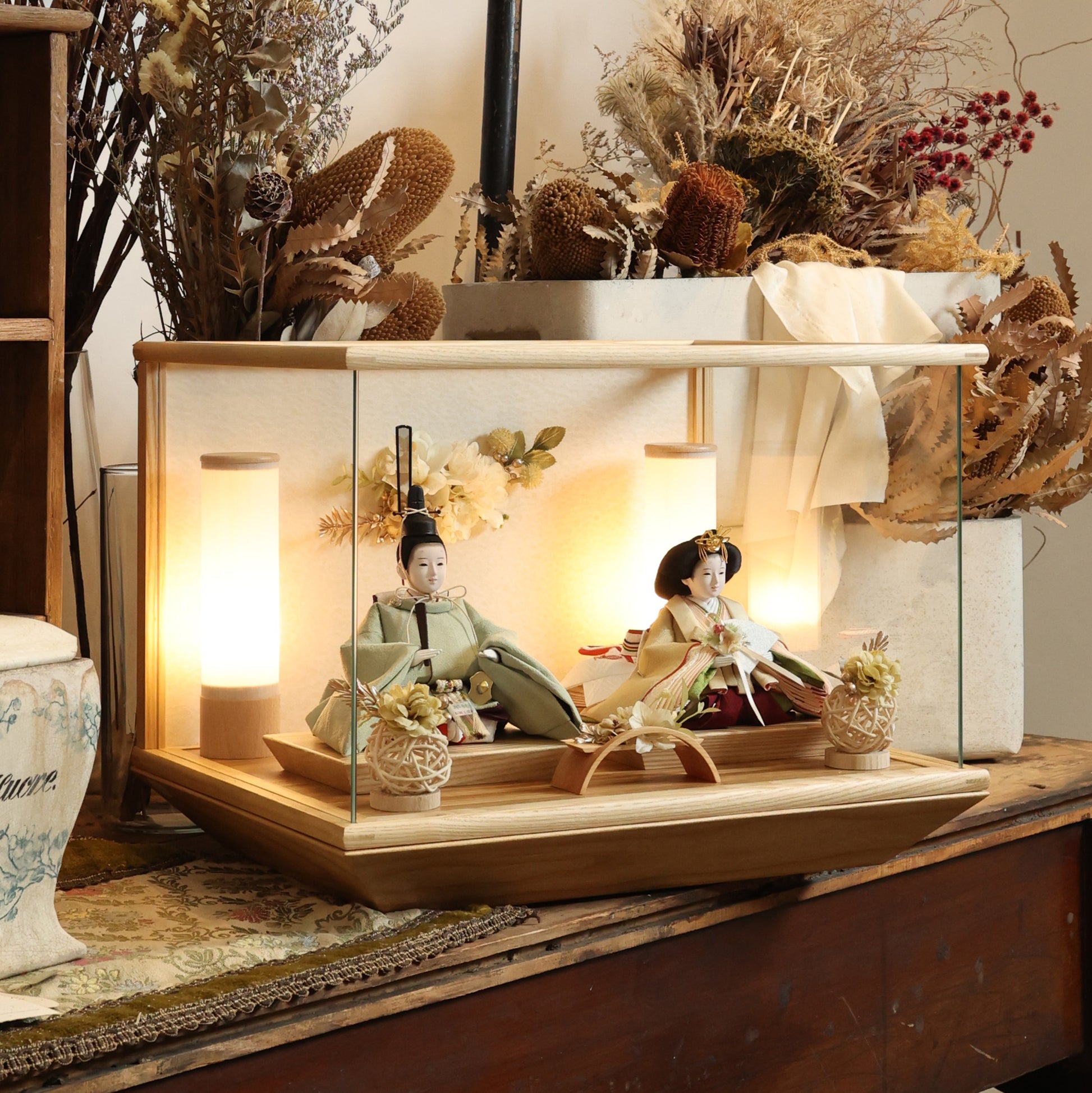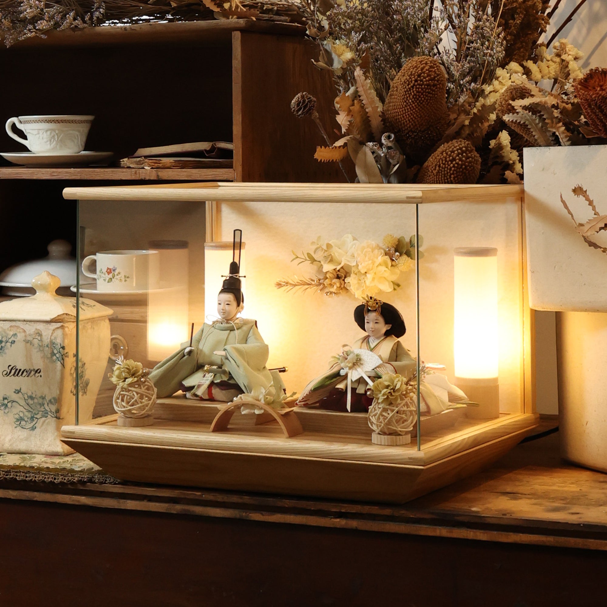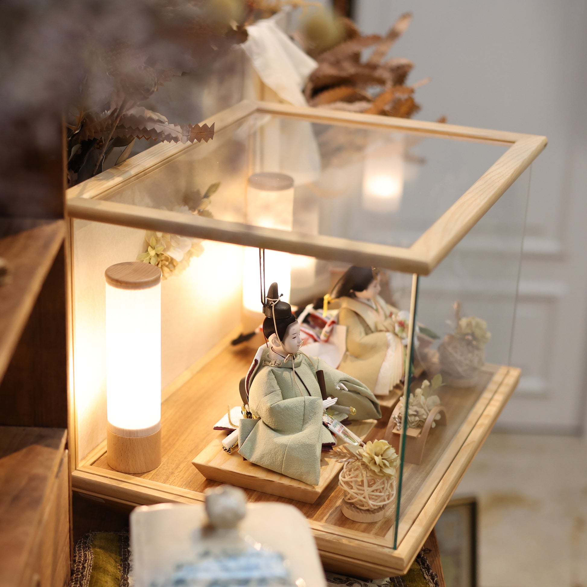 通常2mm厚が一般的な中、当店ではより高品質なAGC製3mmガラスを採用しています。厚みが増すことで強度と安全性が高まり、透明度の高いクリアな美しさを保ちます。大切な雛人形を守りながら、高級感のある見栄えを実現しています。