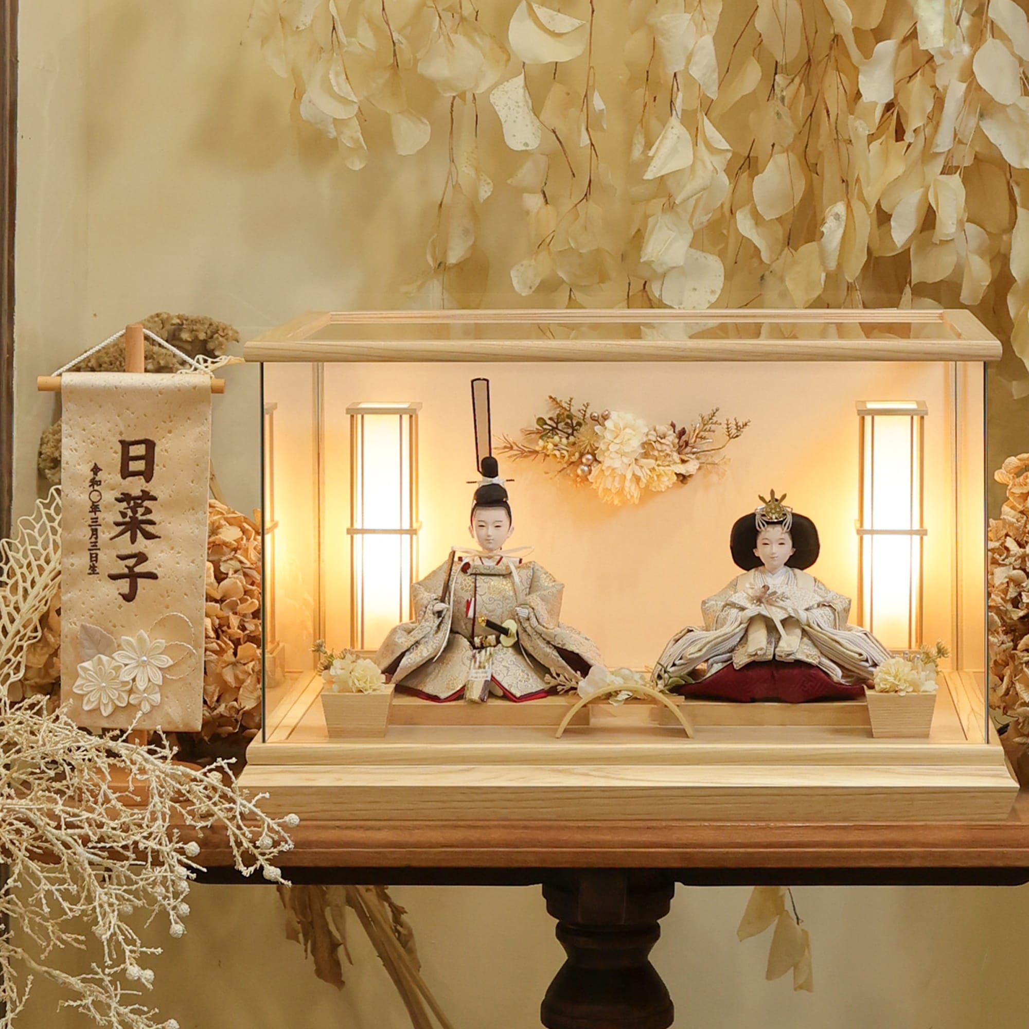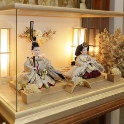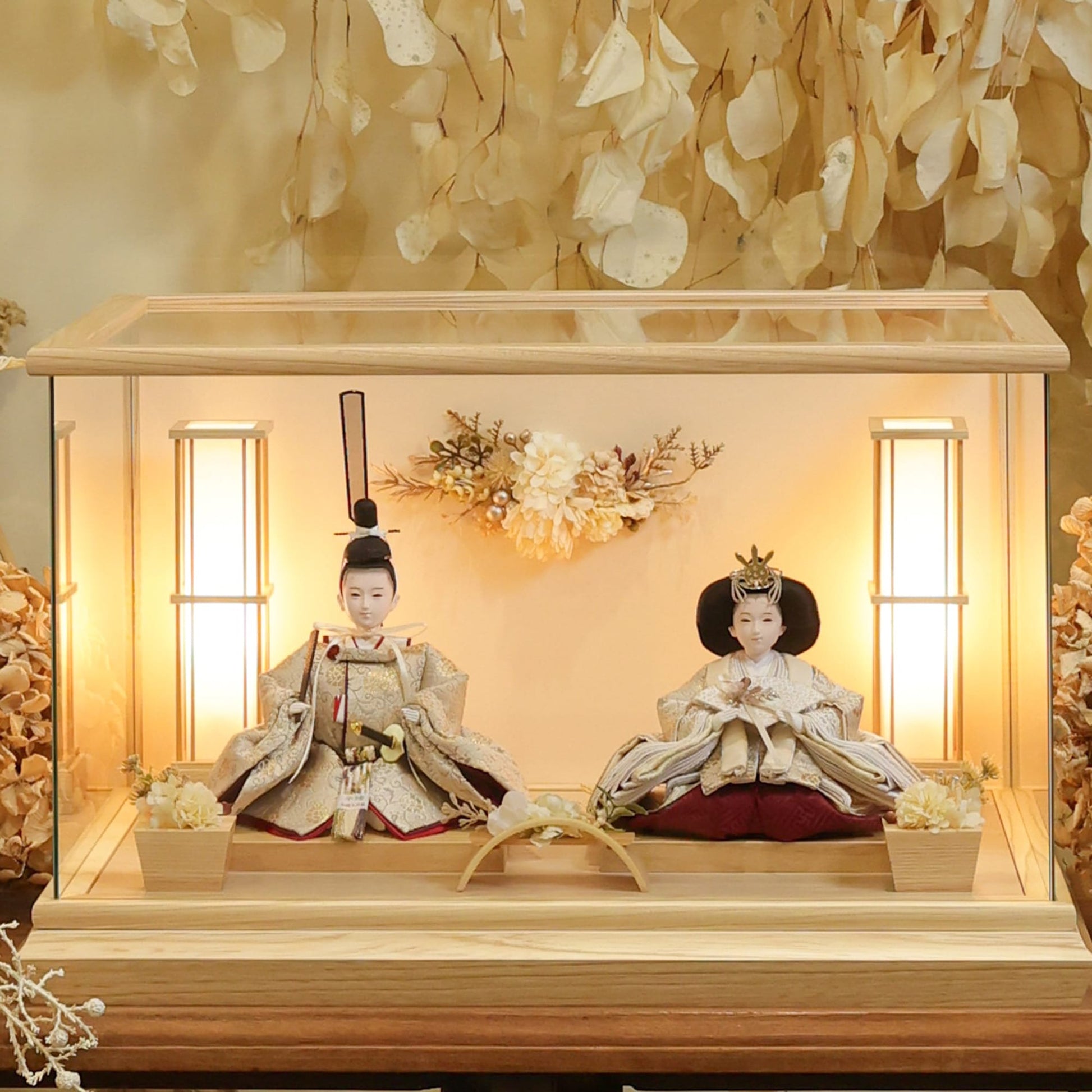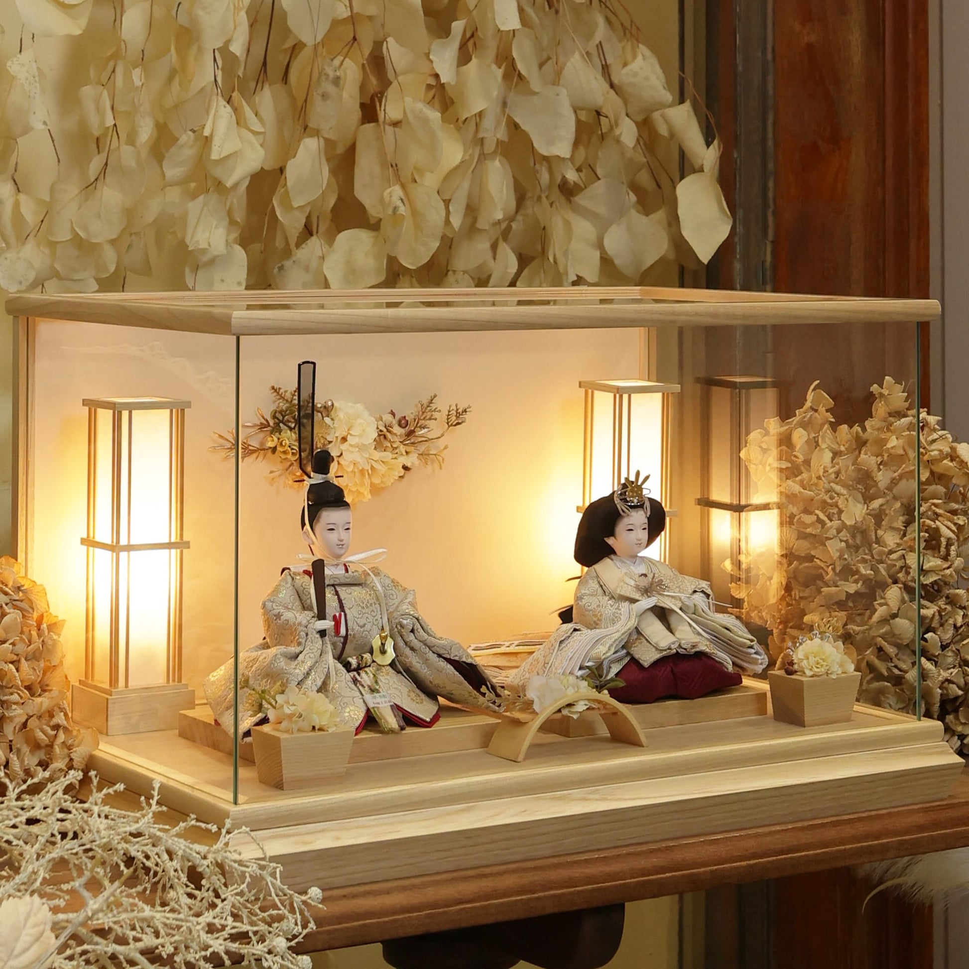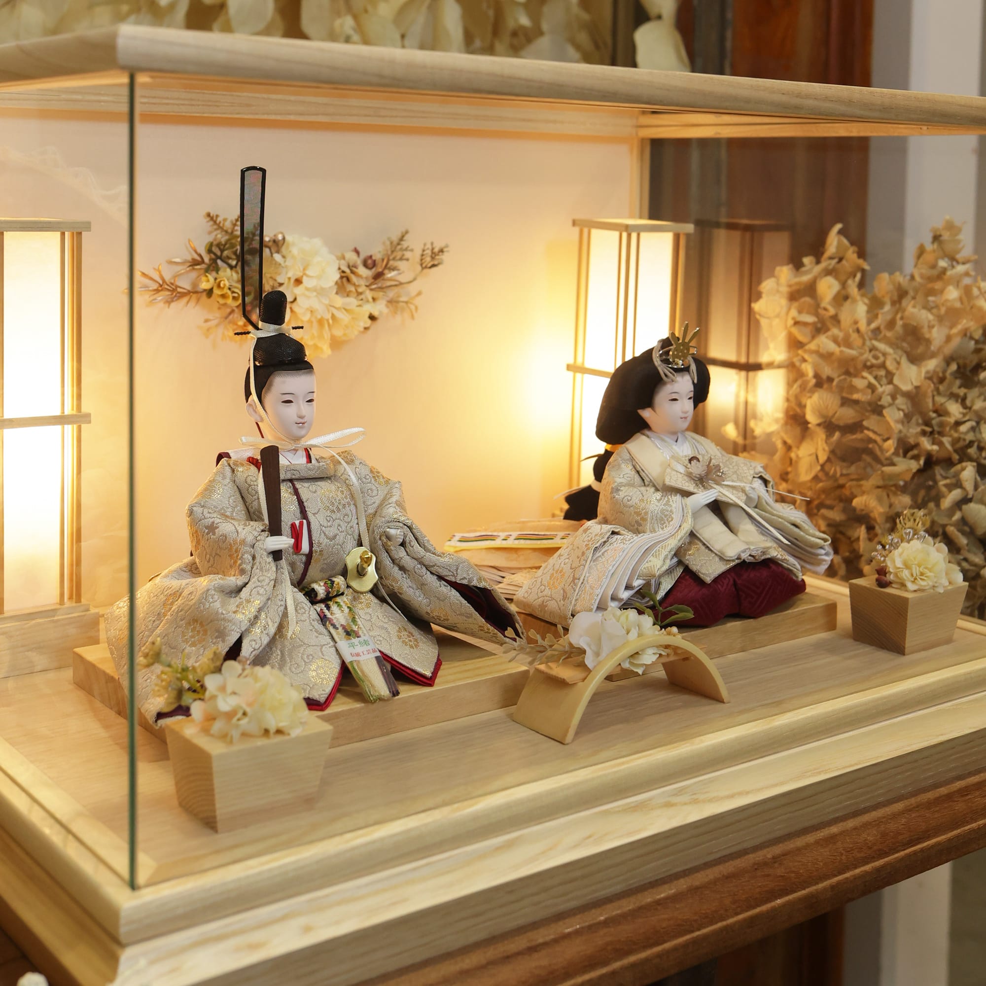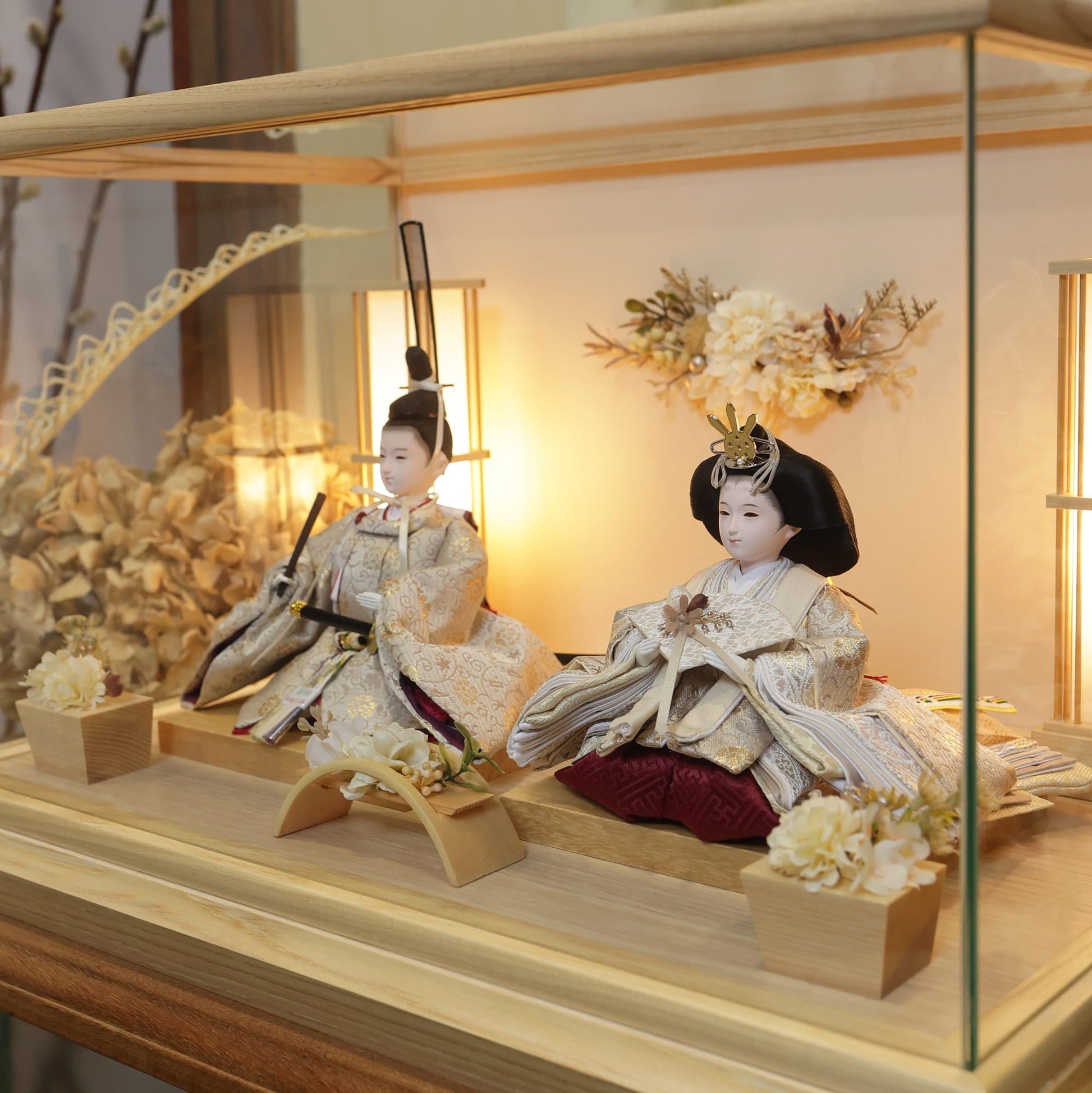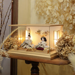 通常2mm厚が一般的な中、当店ではより高品質なAGC製3mmガラスを採用しています。厚みが増すことで強度と安全性が高まり、透明度の高いクリアな美しさを保ちます。大切な雛人形を守りながら、高級感のある見栄えを実現しています。