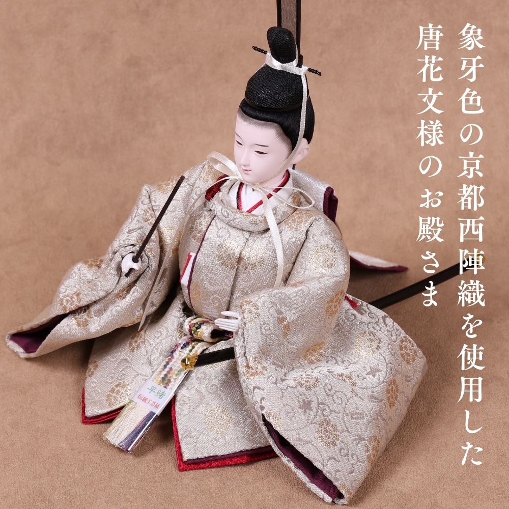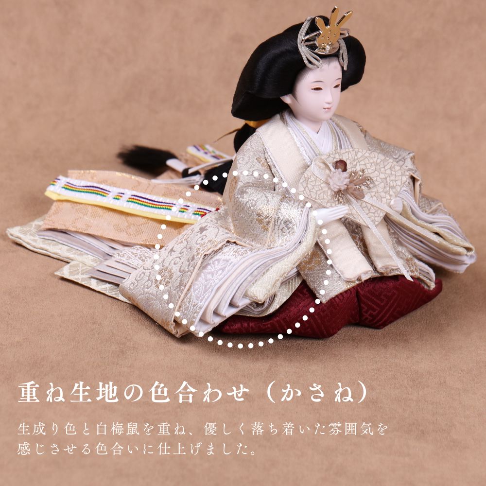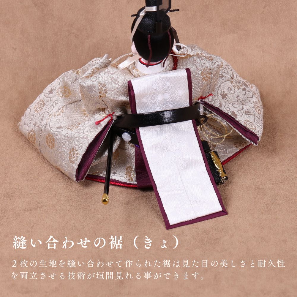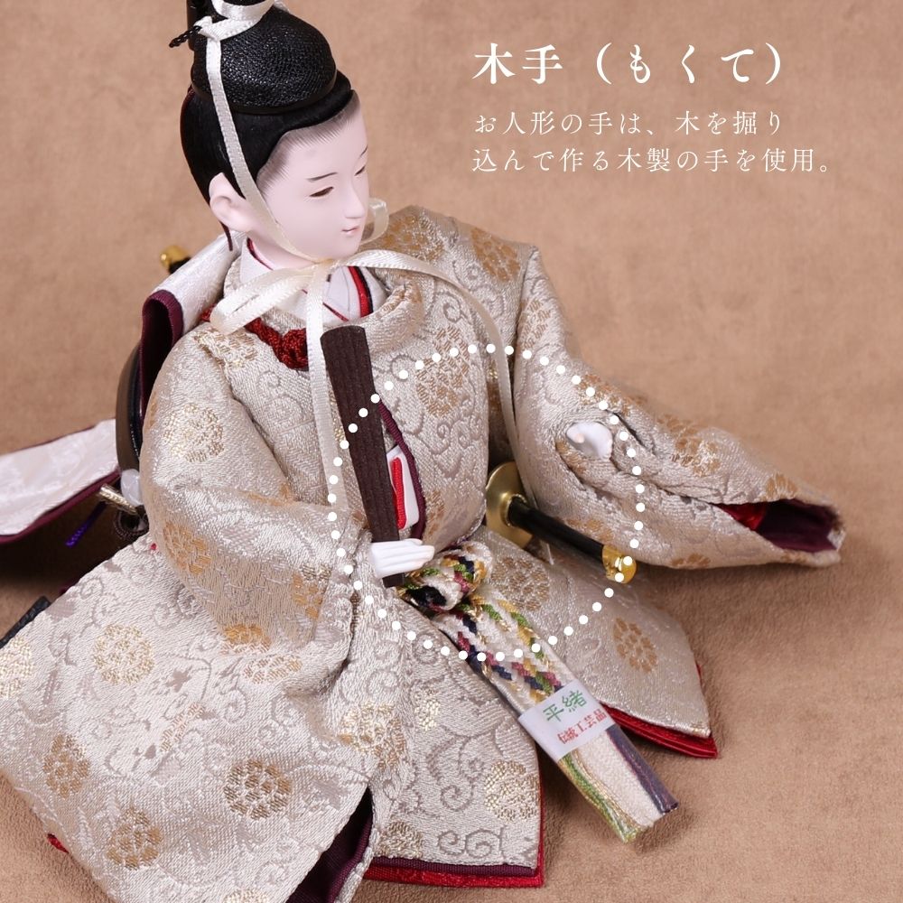 国産の栓(せん)は、美しい木目と温もりある質感が魅力の天然木です。耐久性に優れ、経年とともに味わいを深めます。台座や屏風などに使用することで、自然素材ならではの落ち着いた風合いと上質感を演出し、雛人形全体をより品格ある印象に仕上げます。